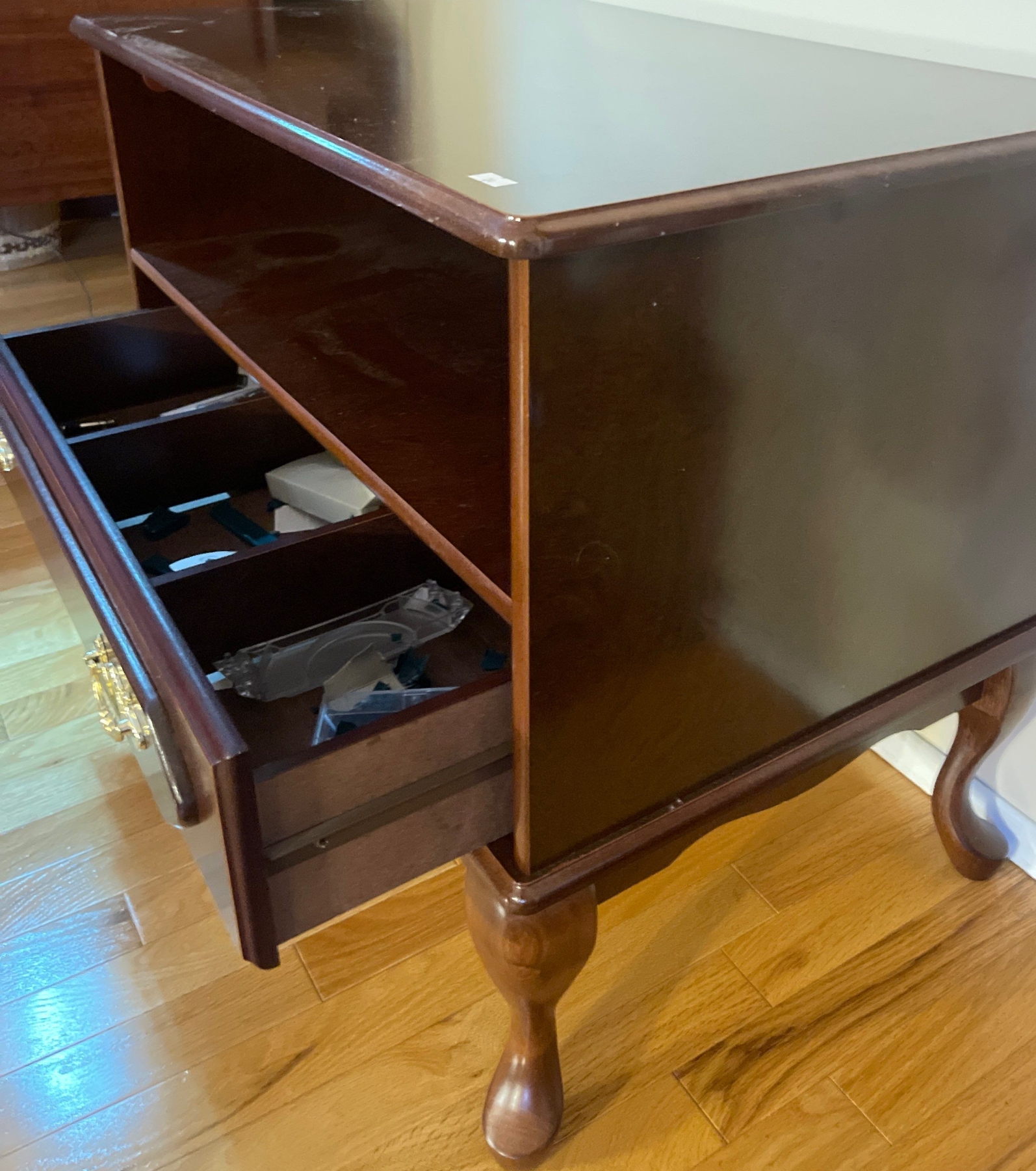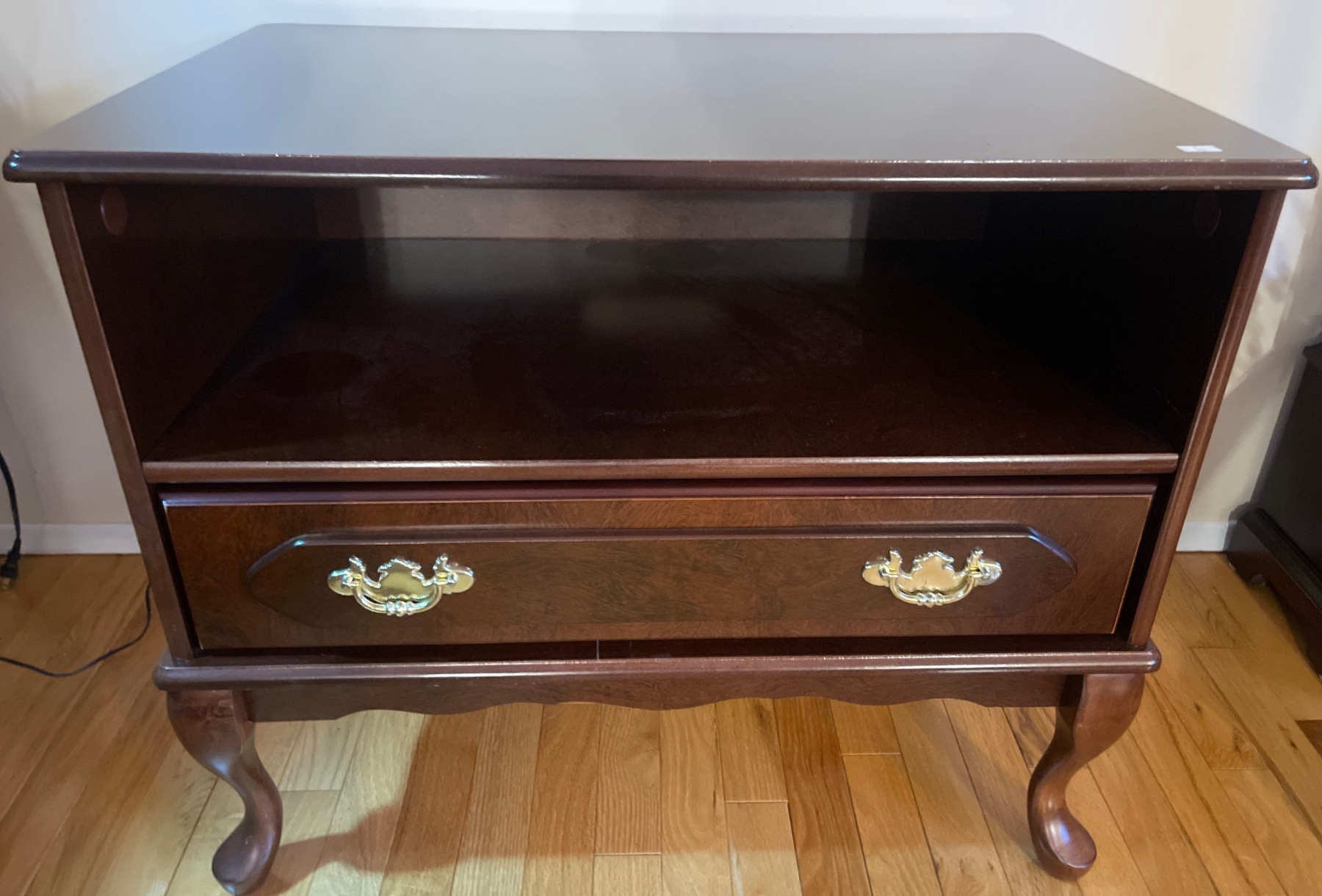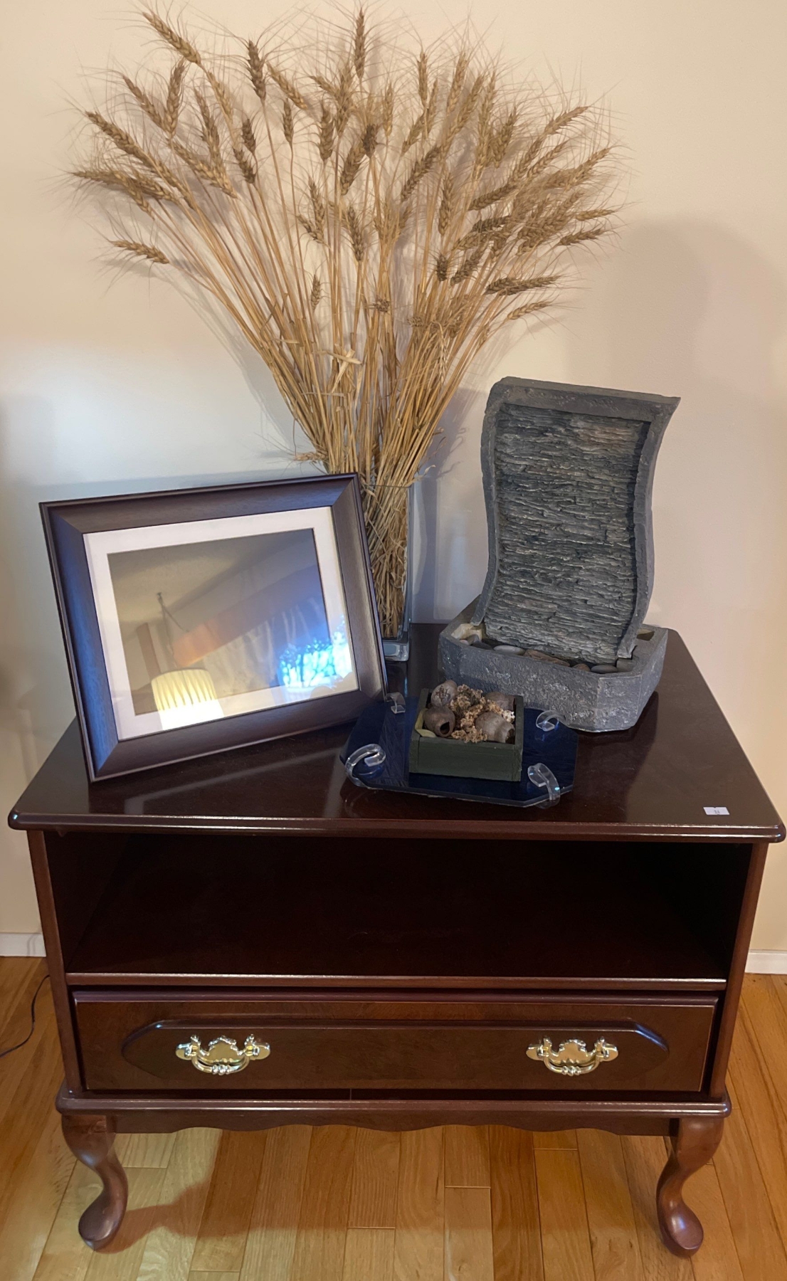 Mahogany/Brass Claw Foot End Table w/ Drawer 28x19x23 Desk Fountain Vase & More