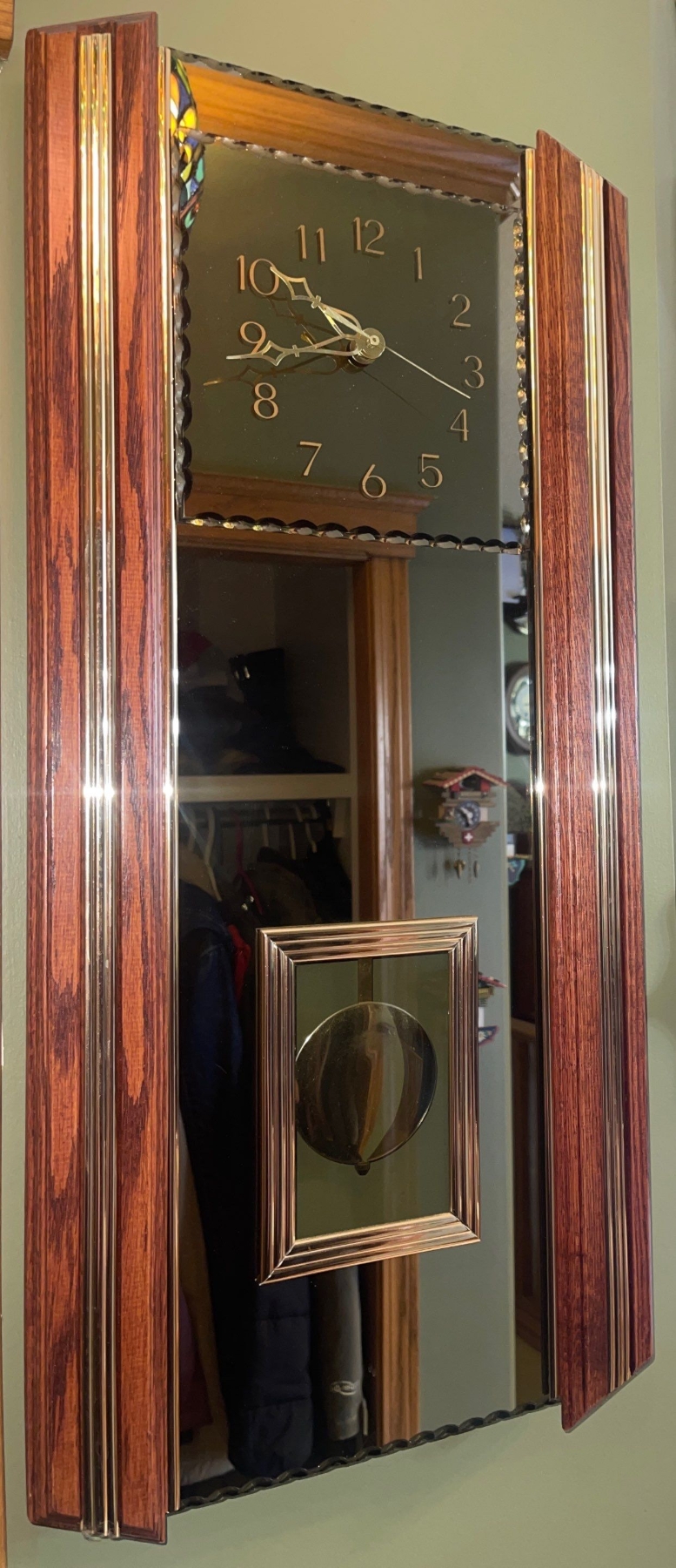 Mahogany & Brass Clock (Wall) 30 x 14 Quartz
