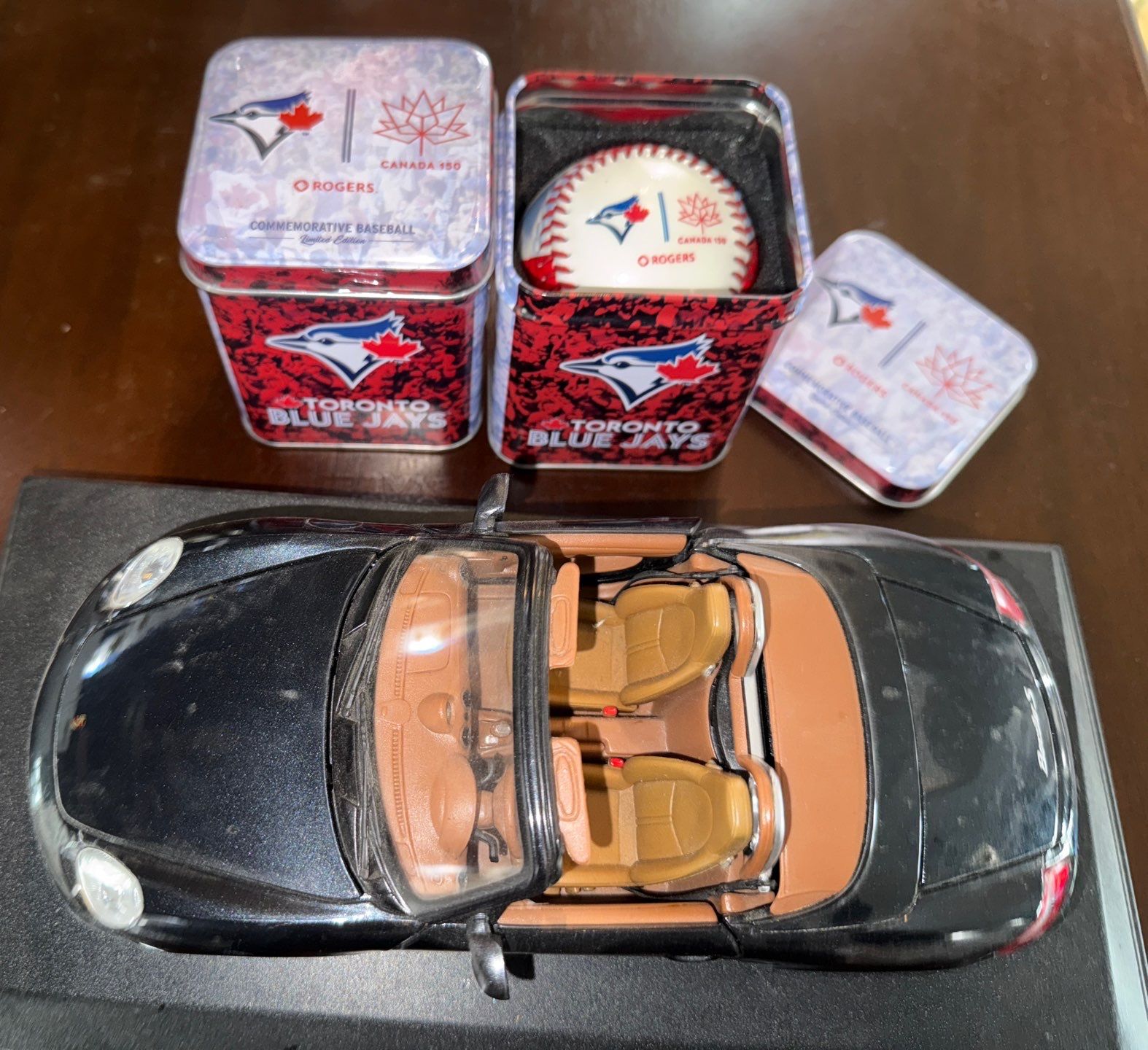 Maisto Model Of A Porsche Boxster S Type 987 & Two Blue-jay Baseballs