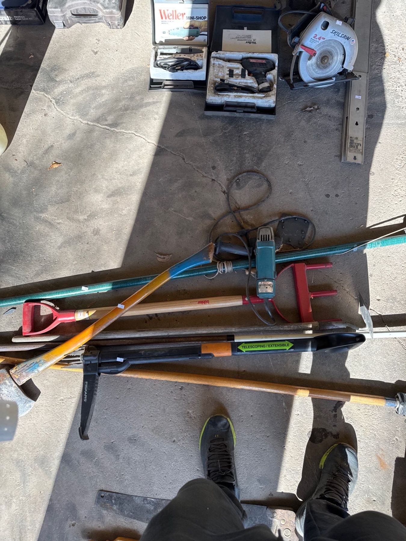 Makita disc grinder Fisker’s telescoping extendible weed picker axe hand, tools yardworks extendible tree trimmer