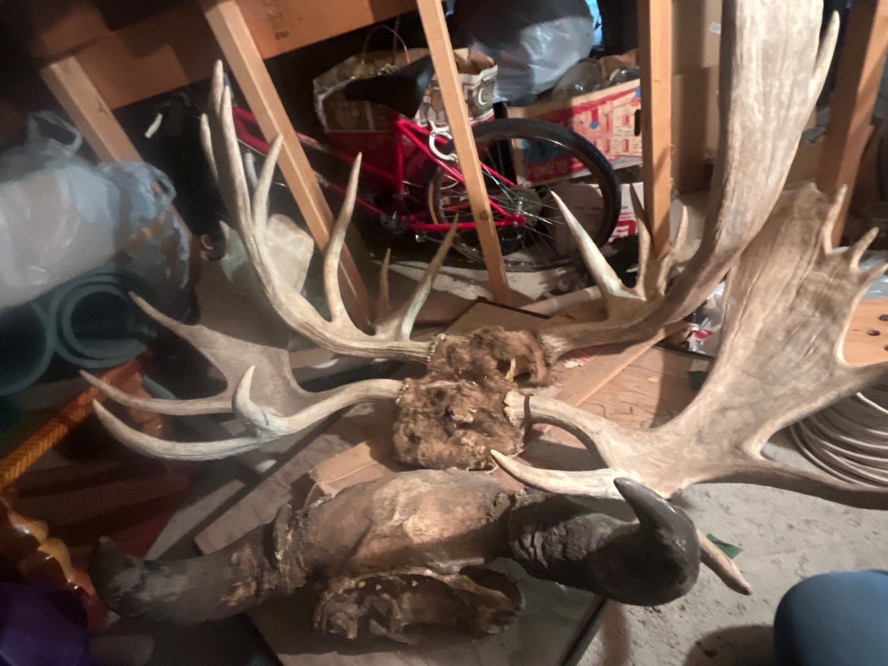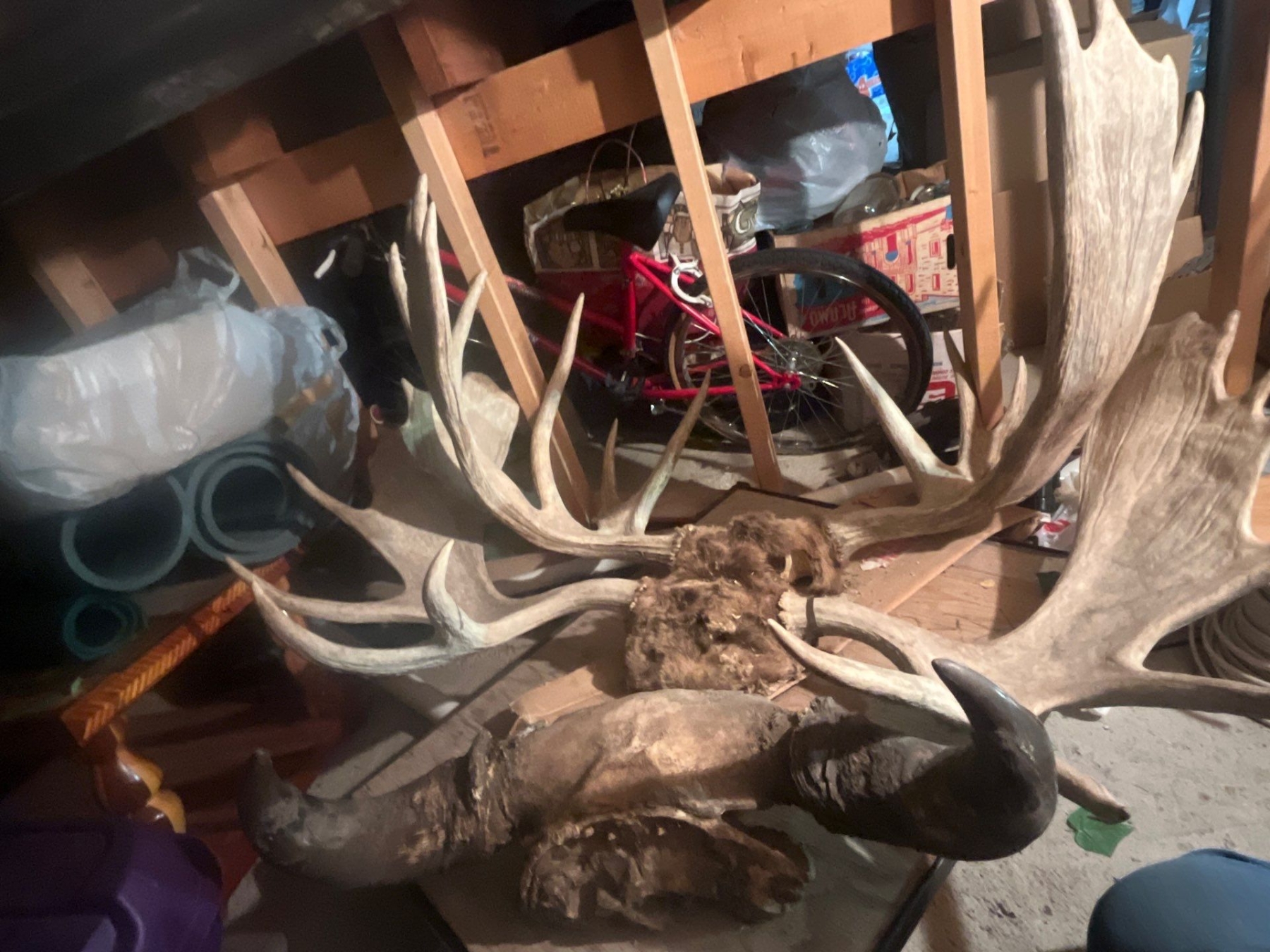 Man Cave and She shed Items horn Mount and two moose. water buffalo