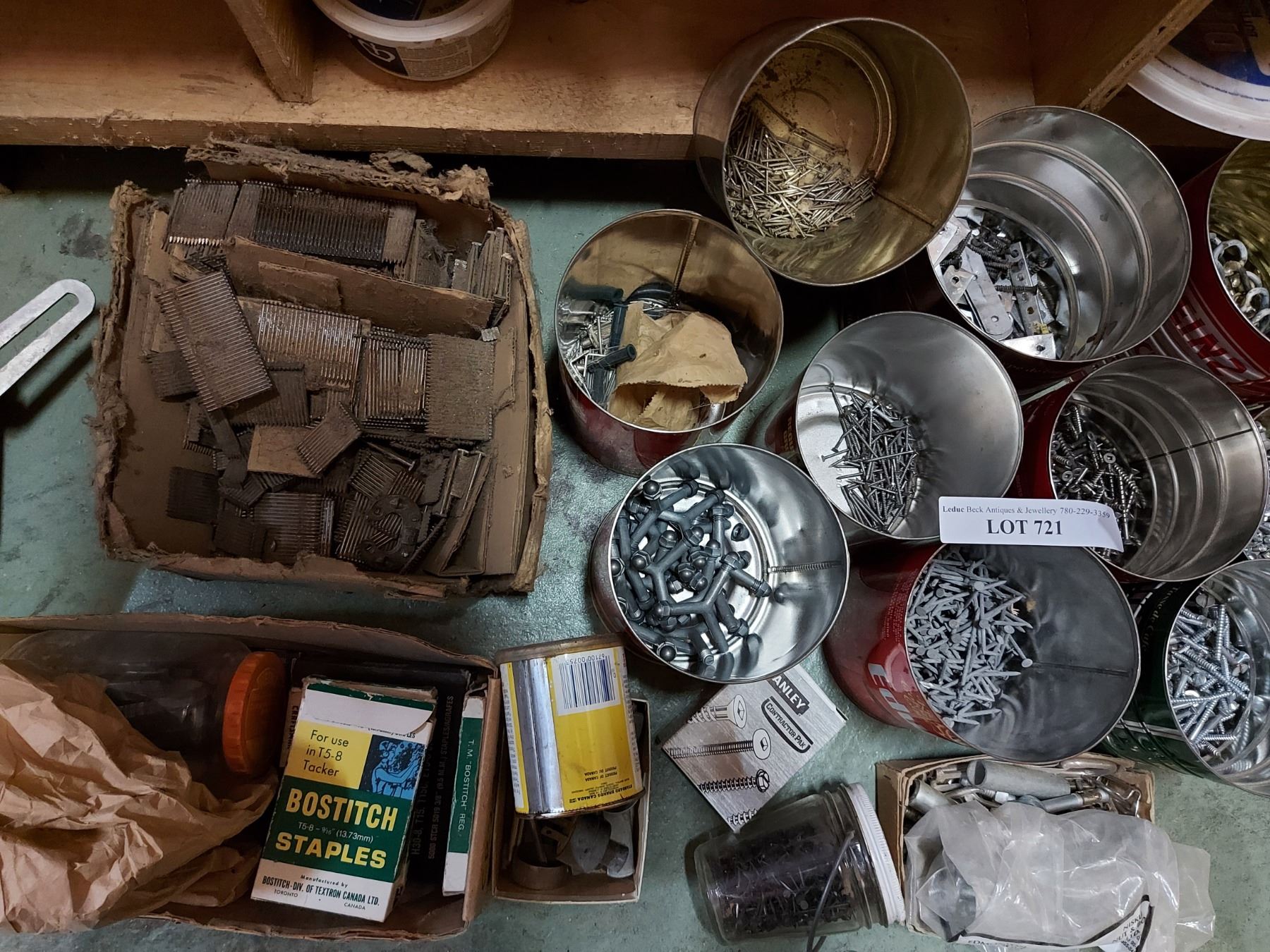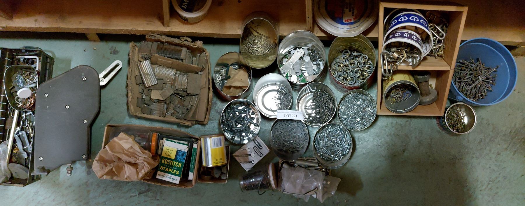 Many nuts, bolts, buckles, staples, screws, various hardware
