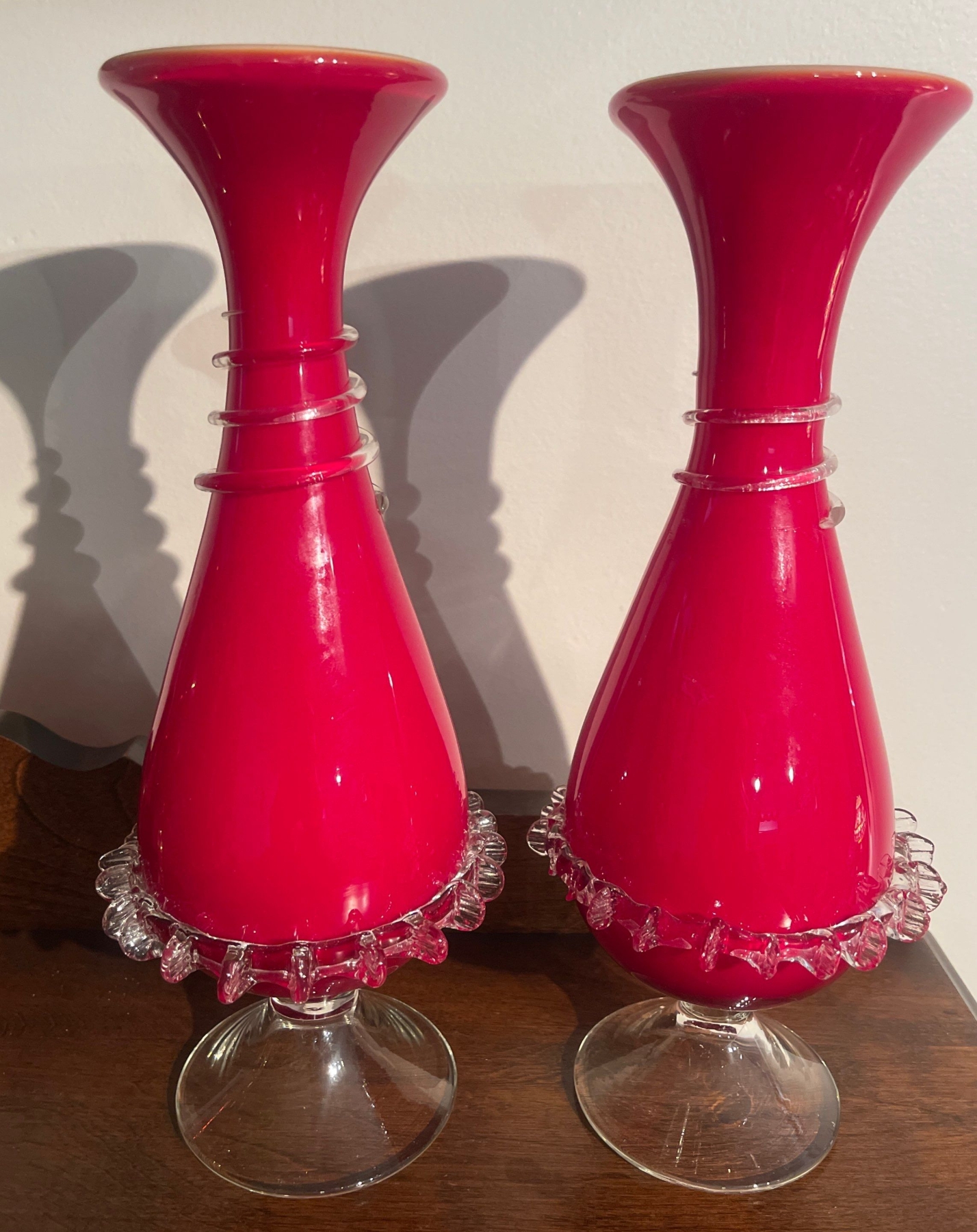 Maraschino Cherry Mouth Blown Vase Duo 11T