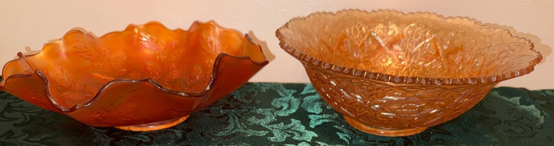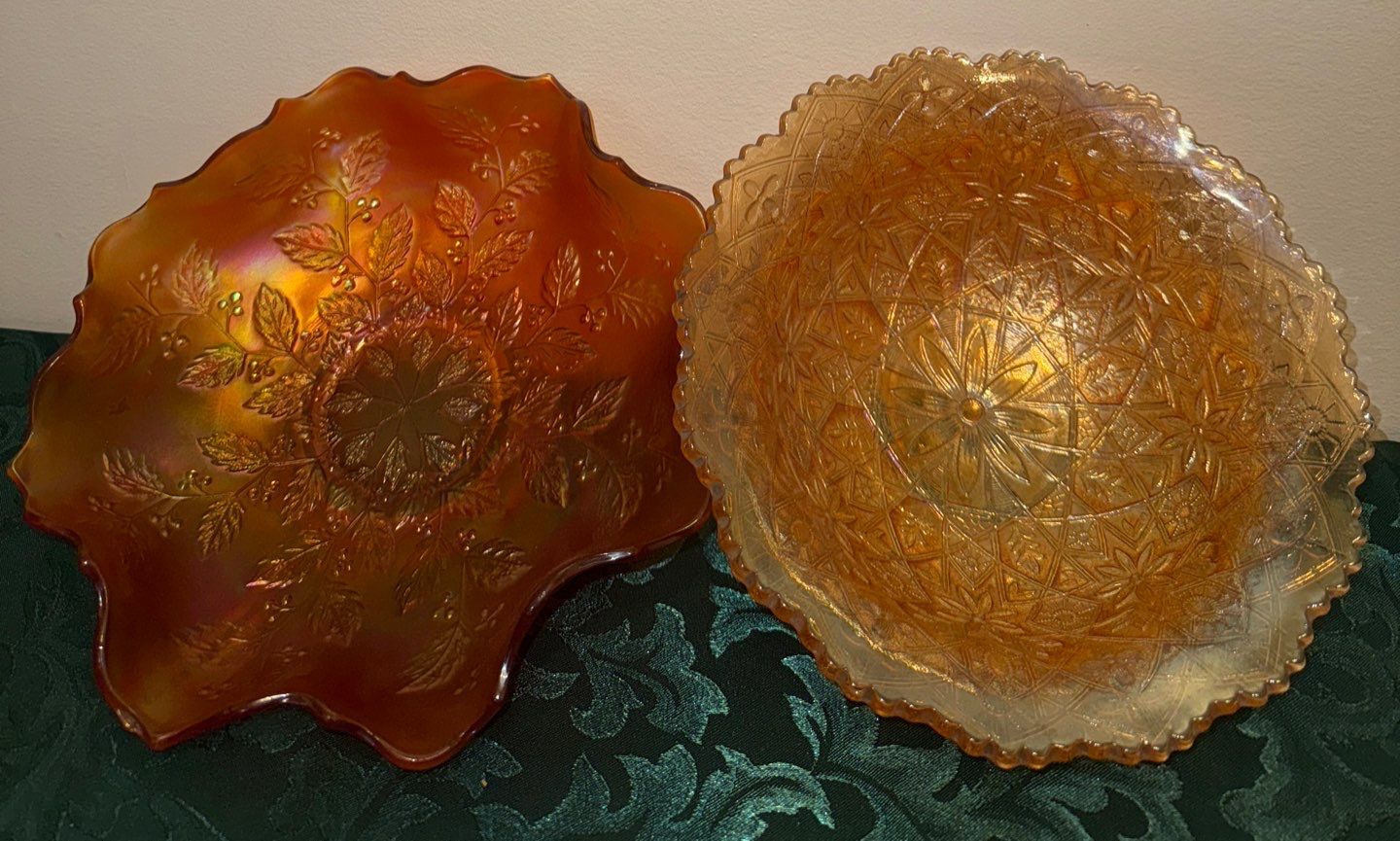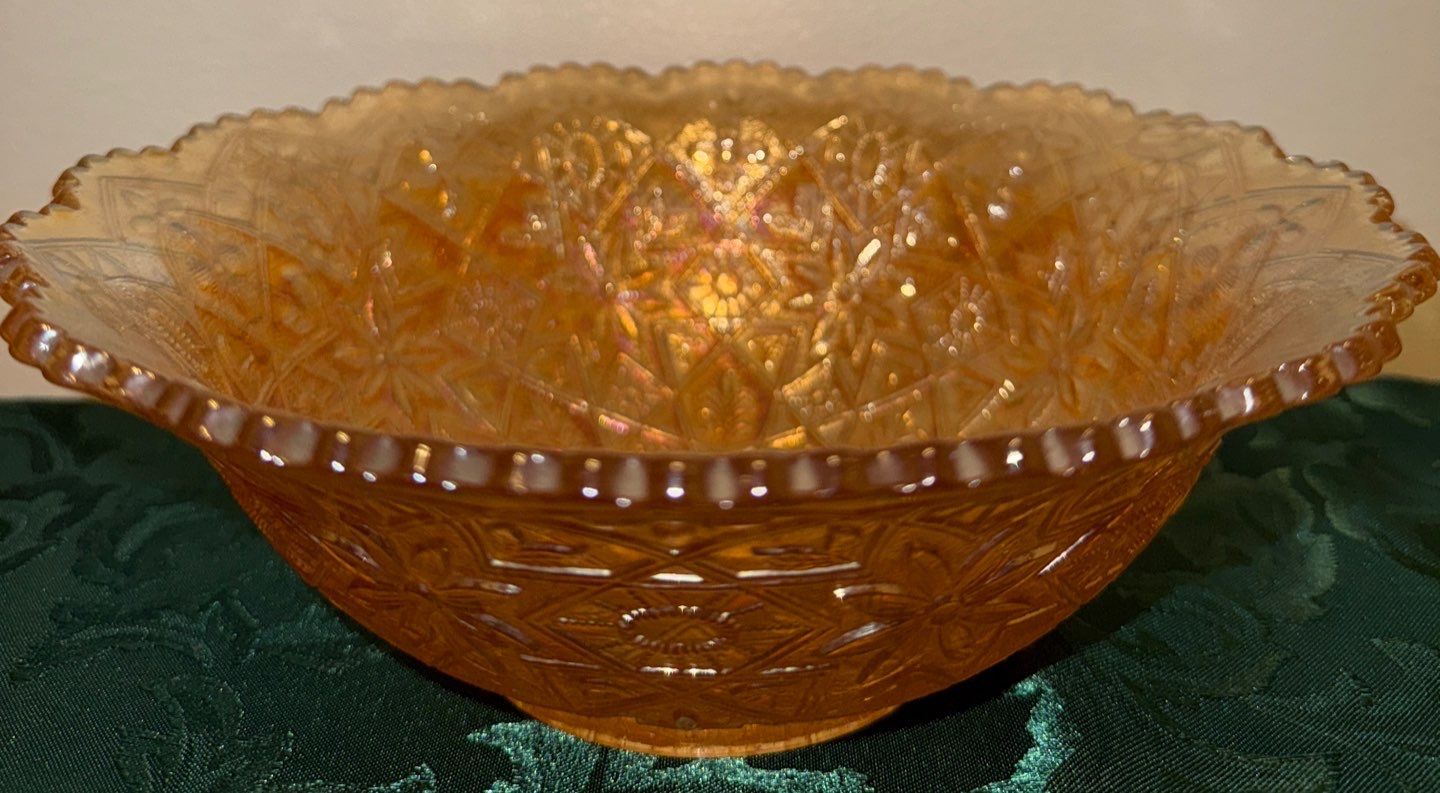 Marigold Carnival Glass Hattie Bowl & Holly Bowl Fenton & Imperial Co