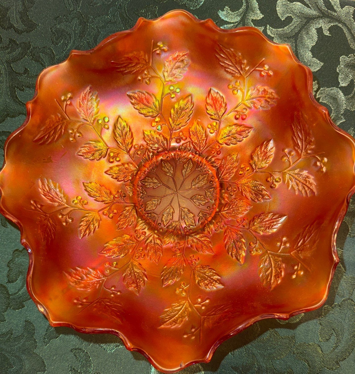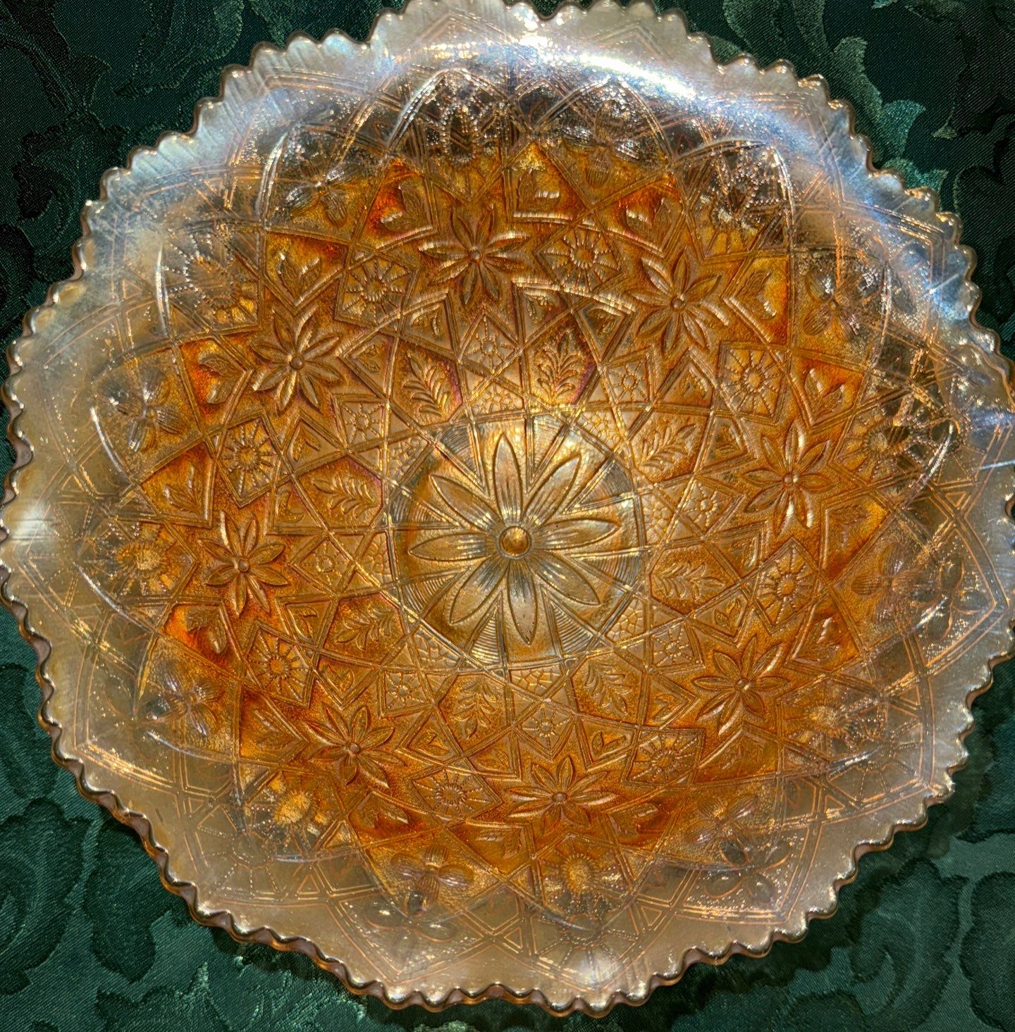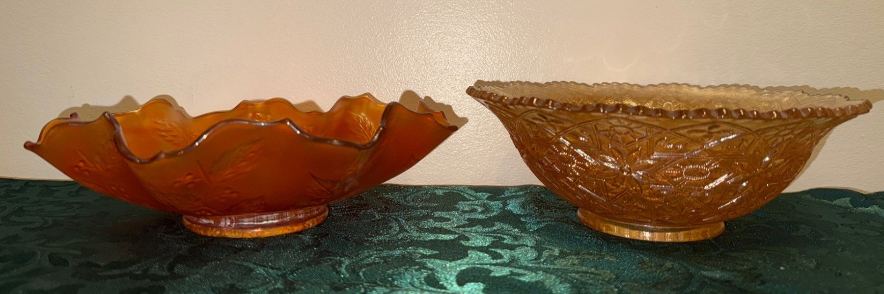 Marigold Carnival Glass Hattie Bowl & Holly Bowl Fenton & Imperial Co