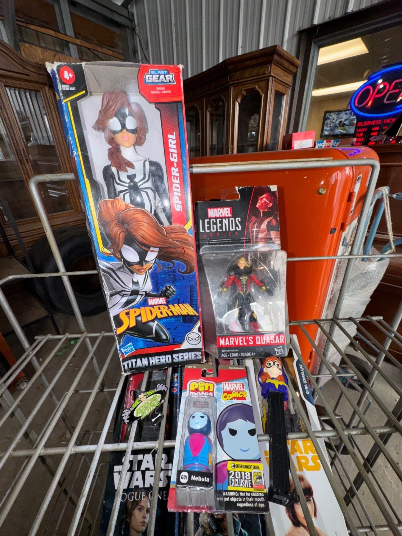 Marvel Collectables-Spider Woman Action Figure, Pez Dispensers, Riddler Keychain