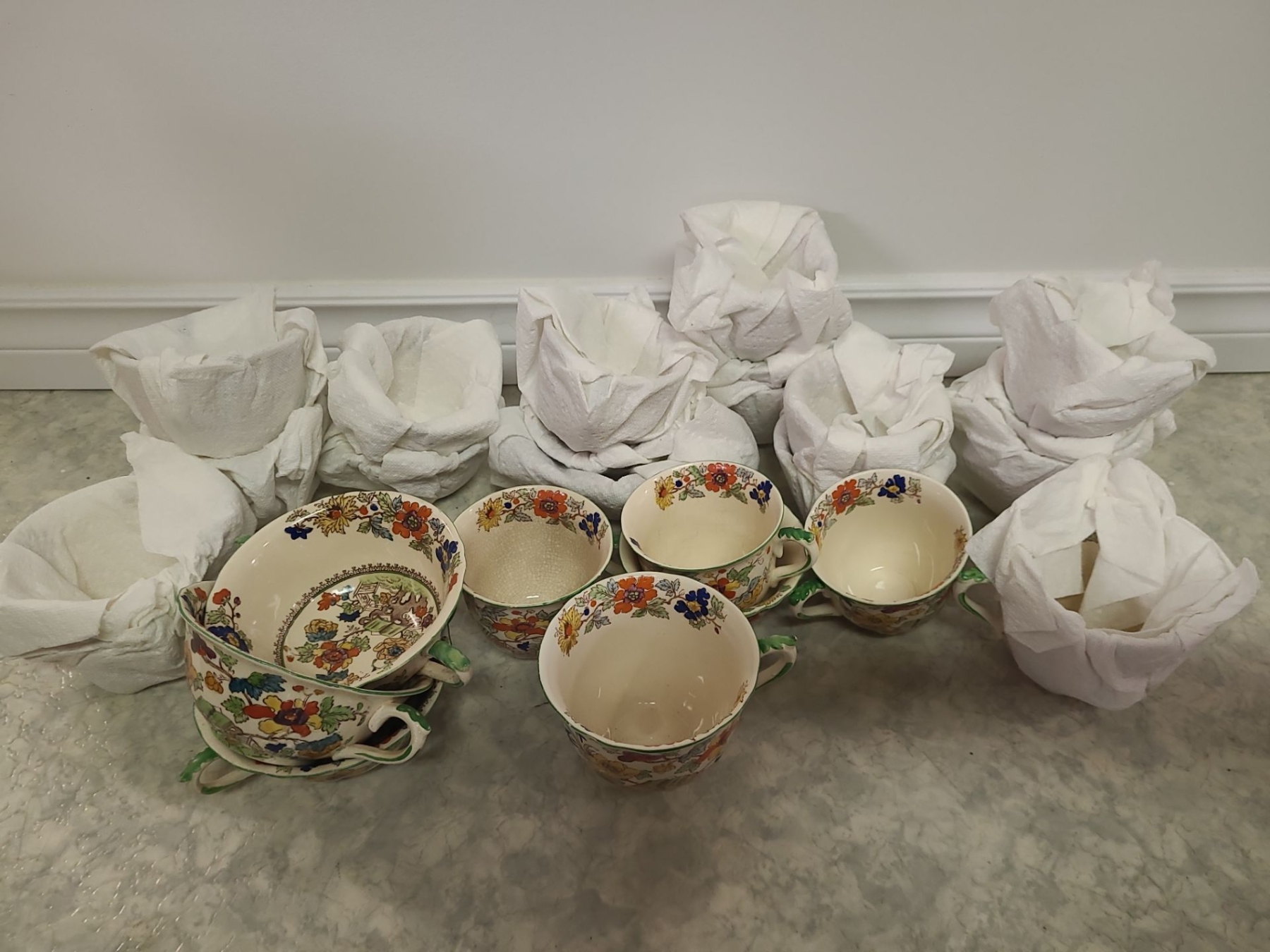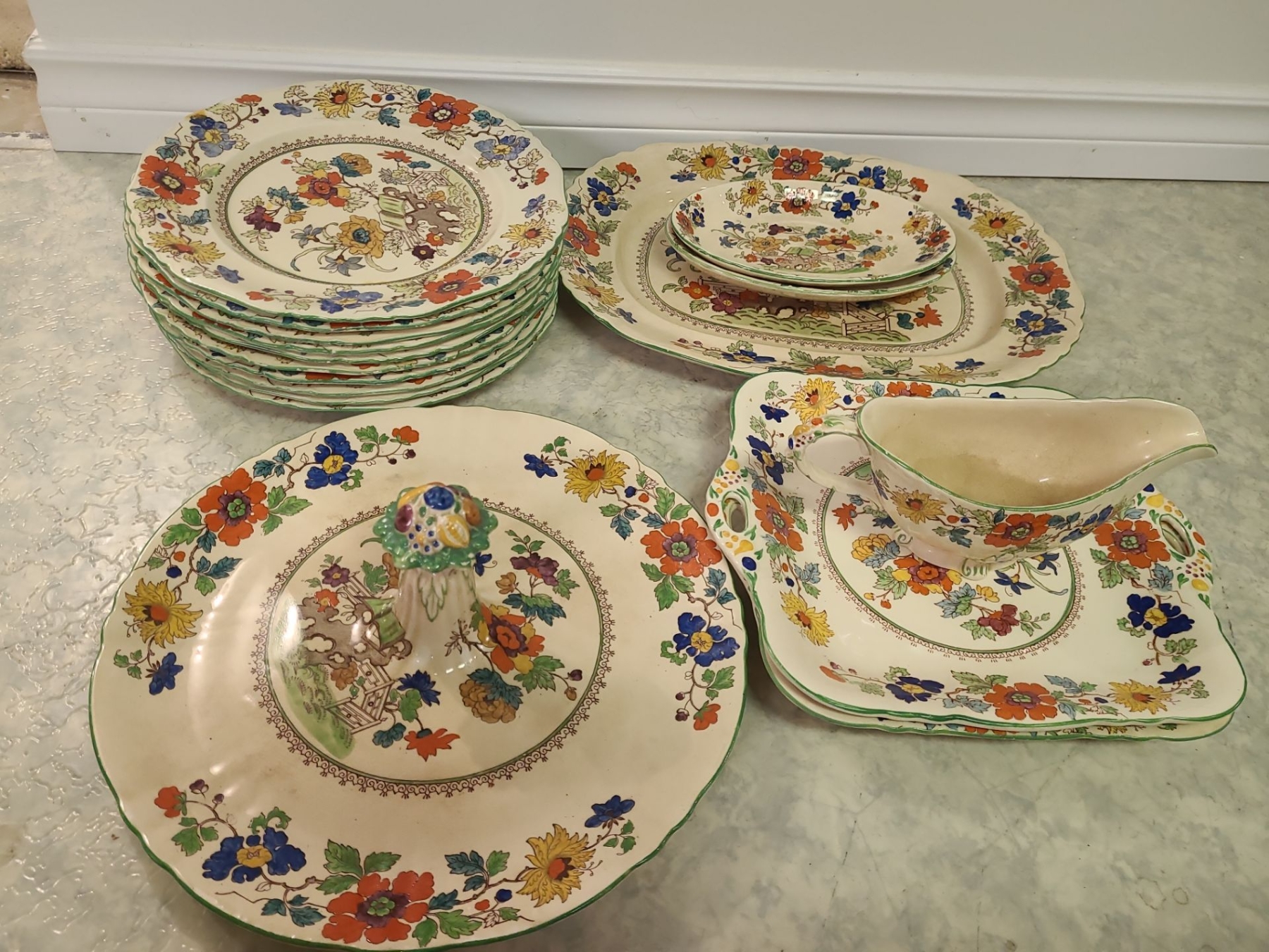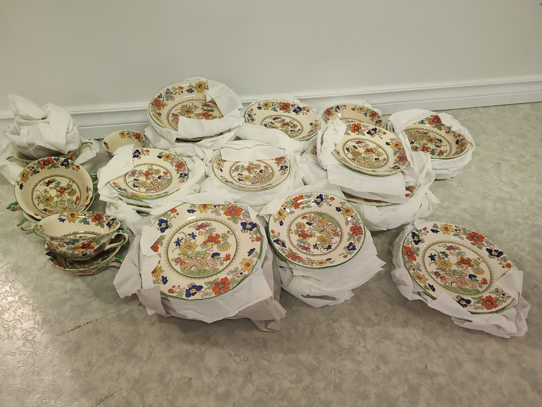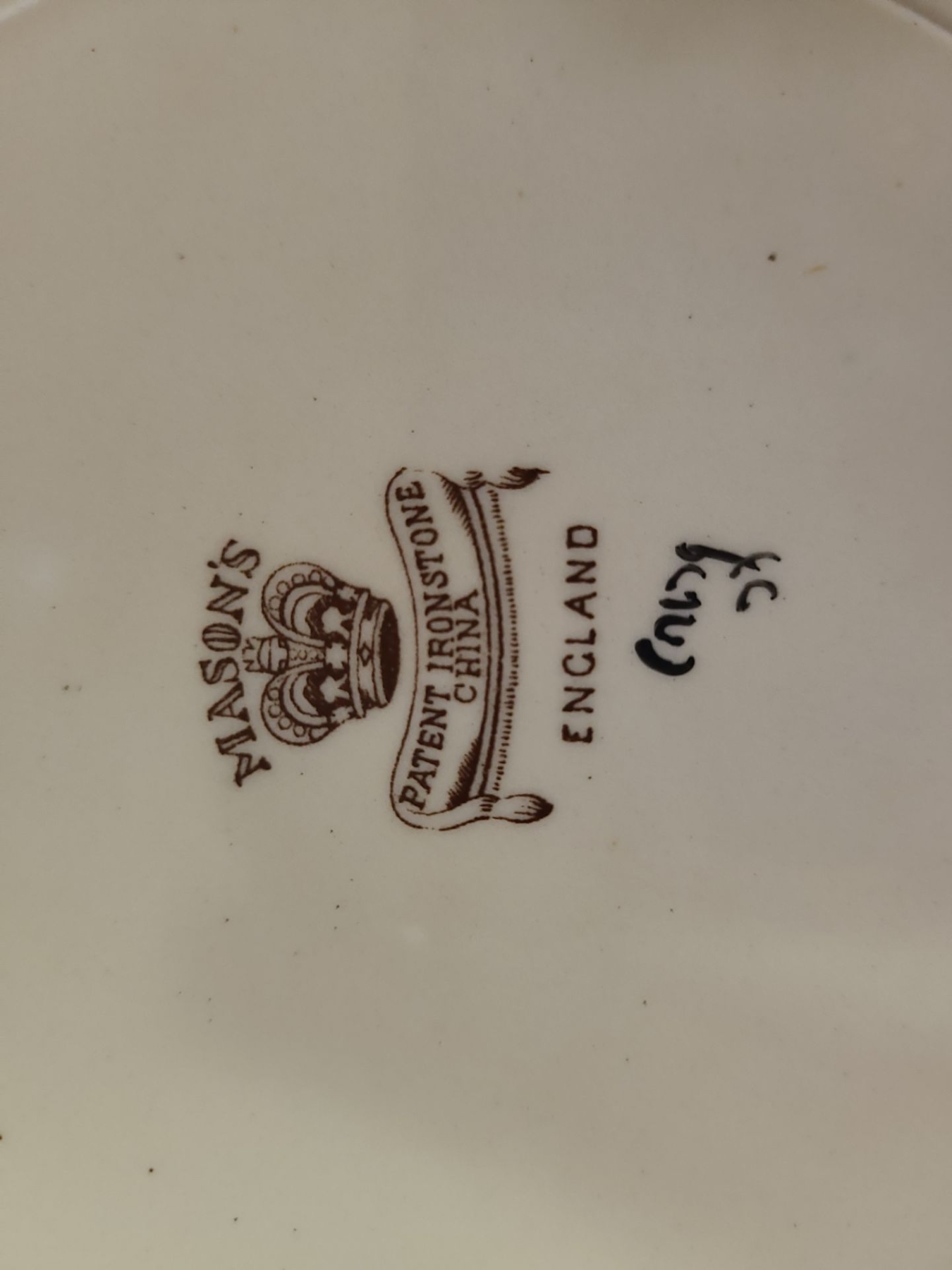 "Mason's Ironstone China" floral pattern (plates, serving dishes, bowls, teacups, not complete set)