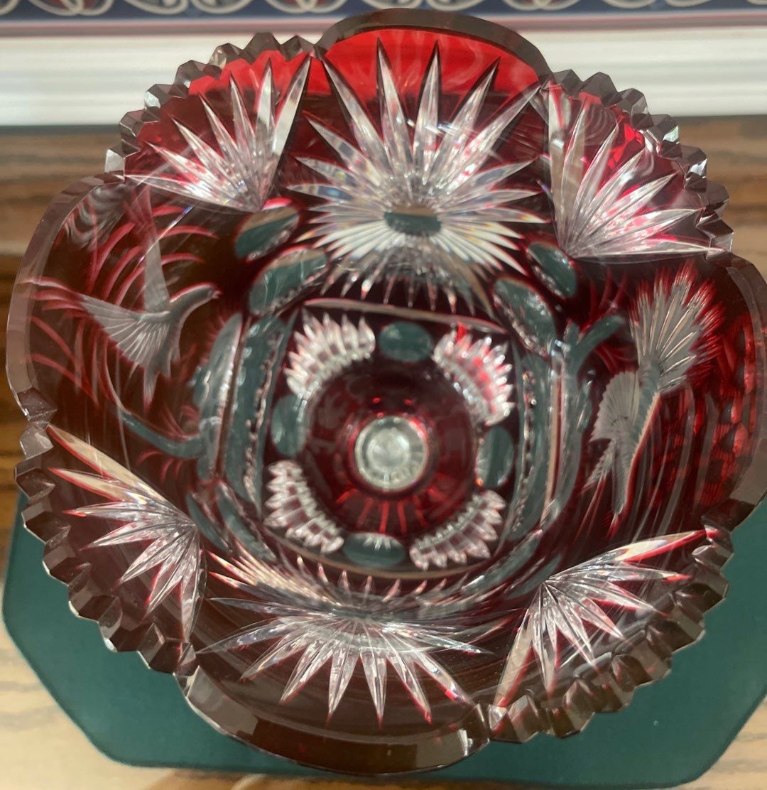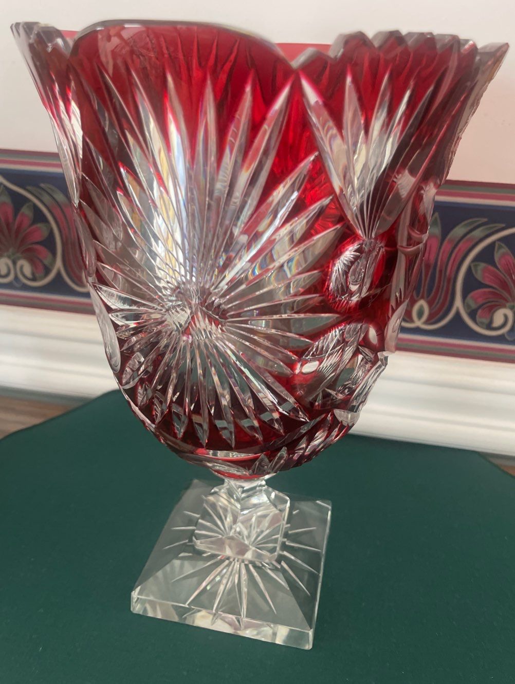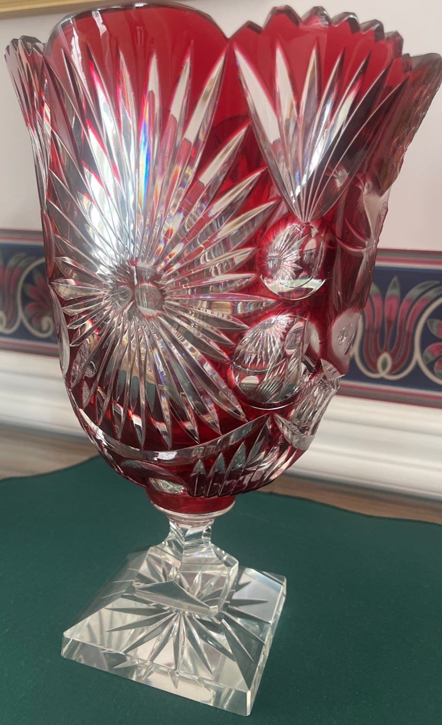 Massive Bohemian Cranberry Cut Crystal Goblet / Chalice 12T
