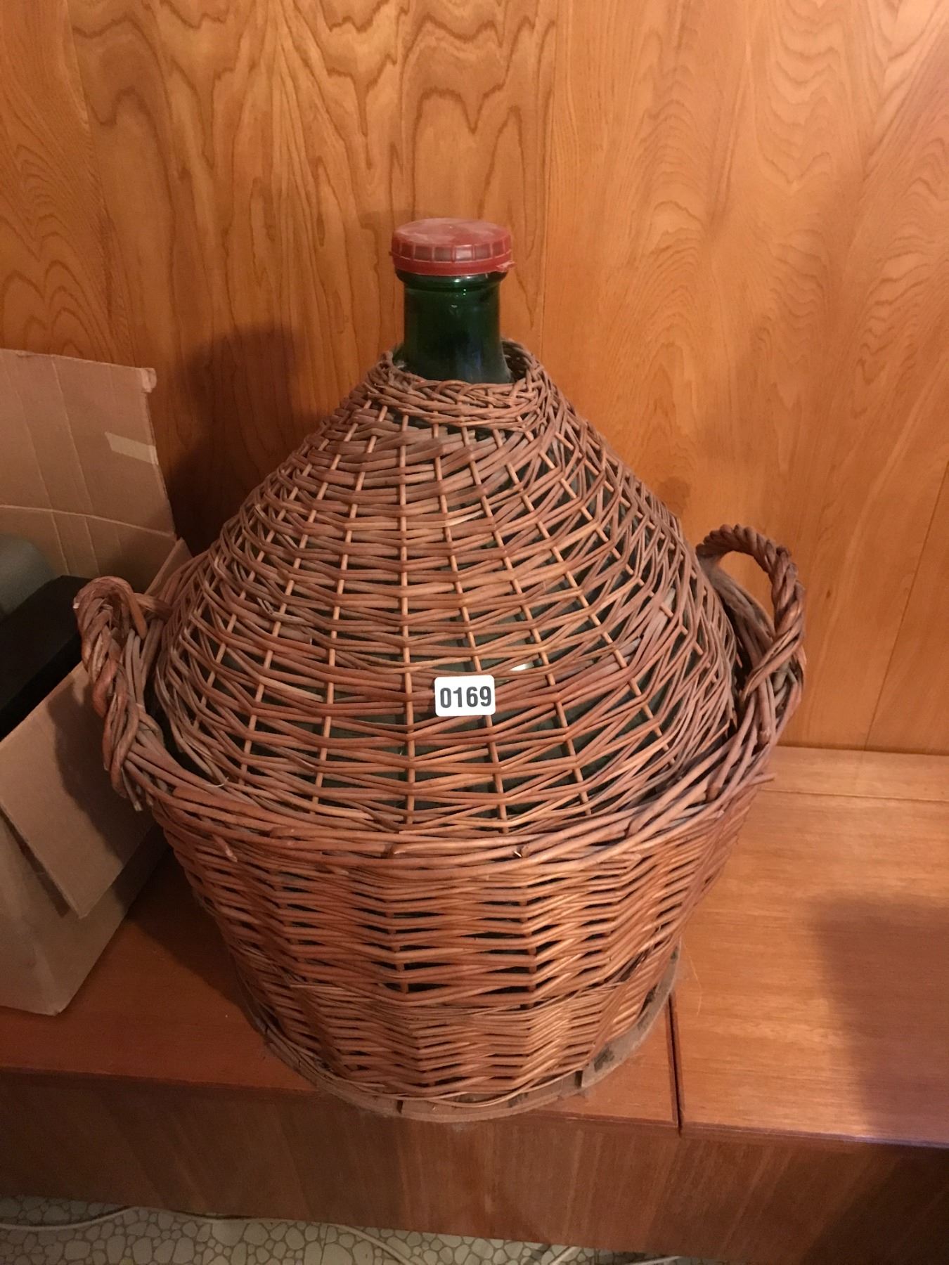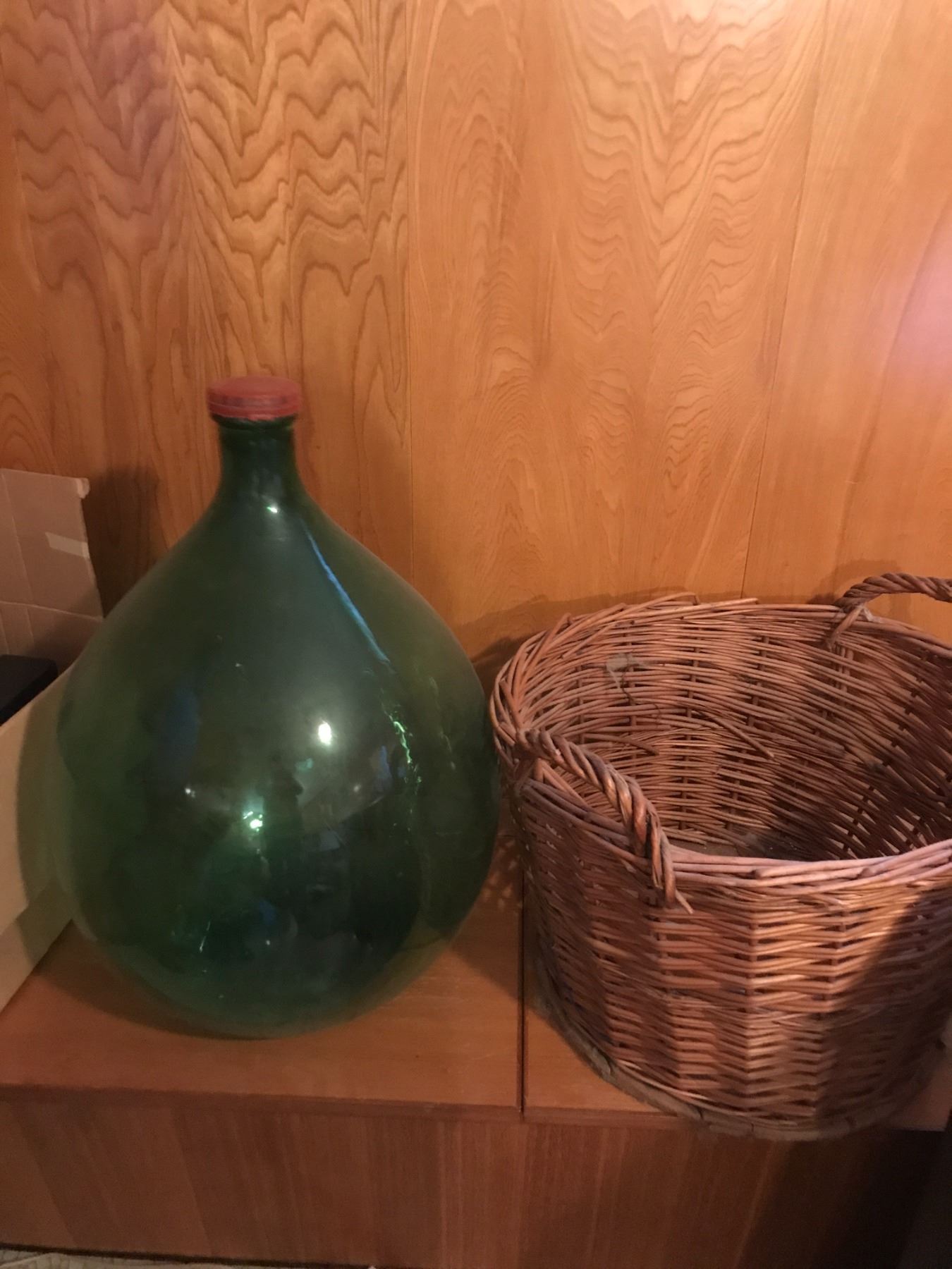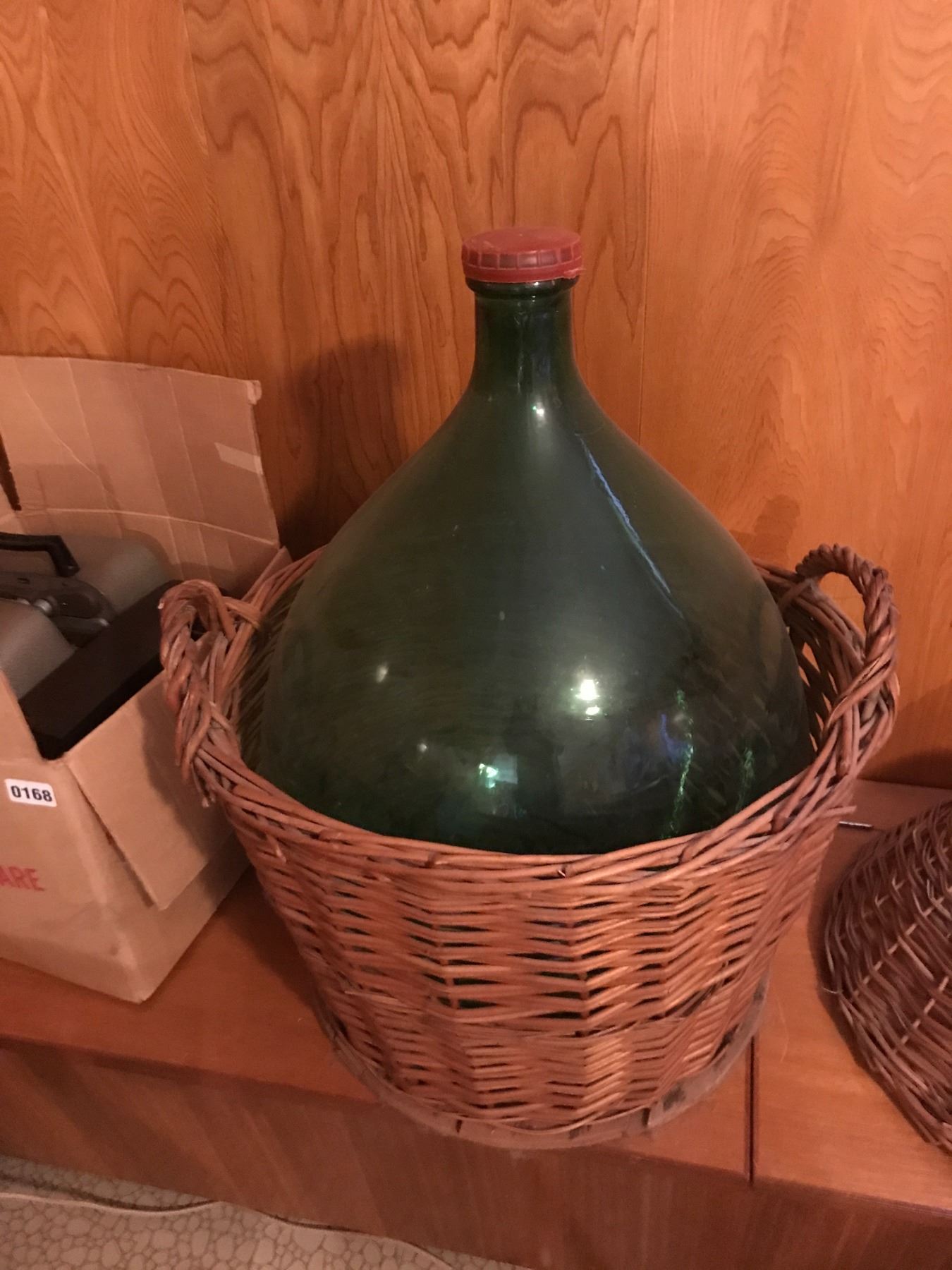 Massive Viresa Green Glass Bottle Demijohn Woven Wicker Encased Wine Bottle Vessel