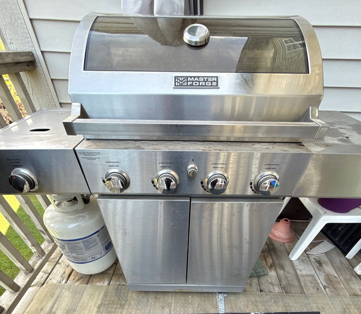 Master Forge Propane BBQ Grill w/ Side Searing Feature 56x21x45 w/ Propane Bottle