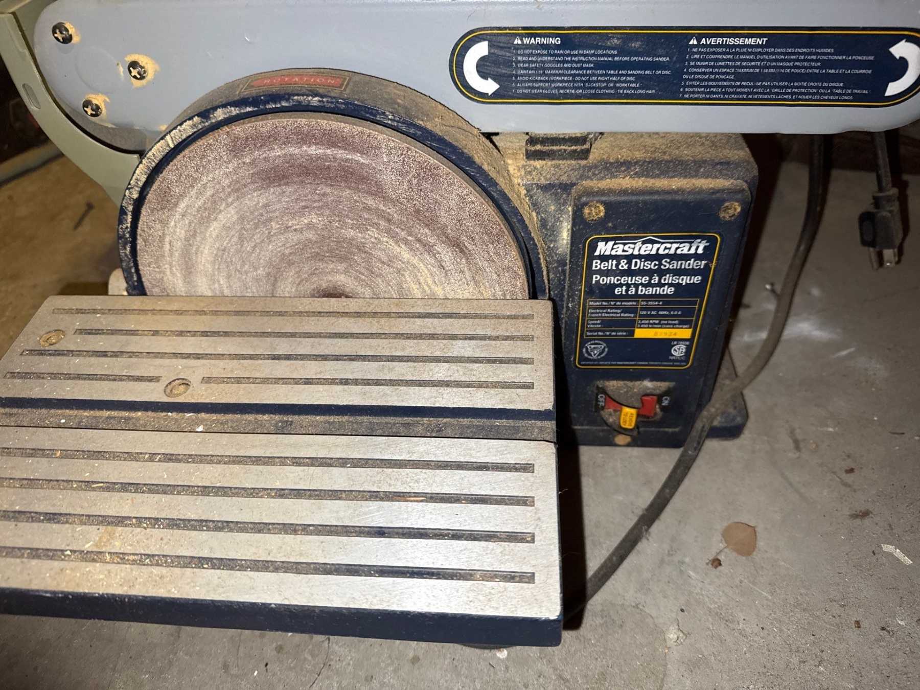 Mastercraft Belt & Disc Sander Model No. 55-1554-4