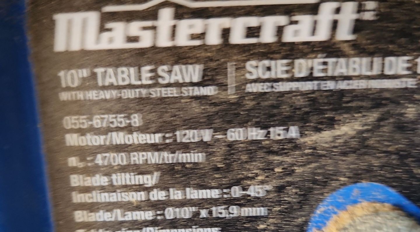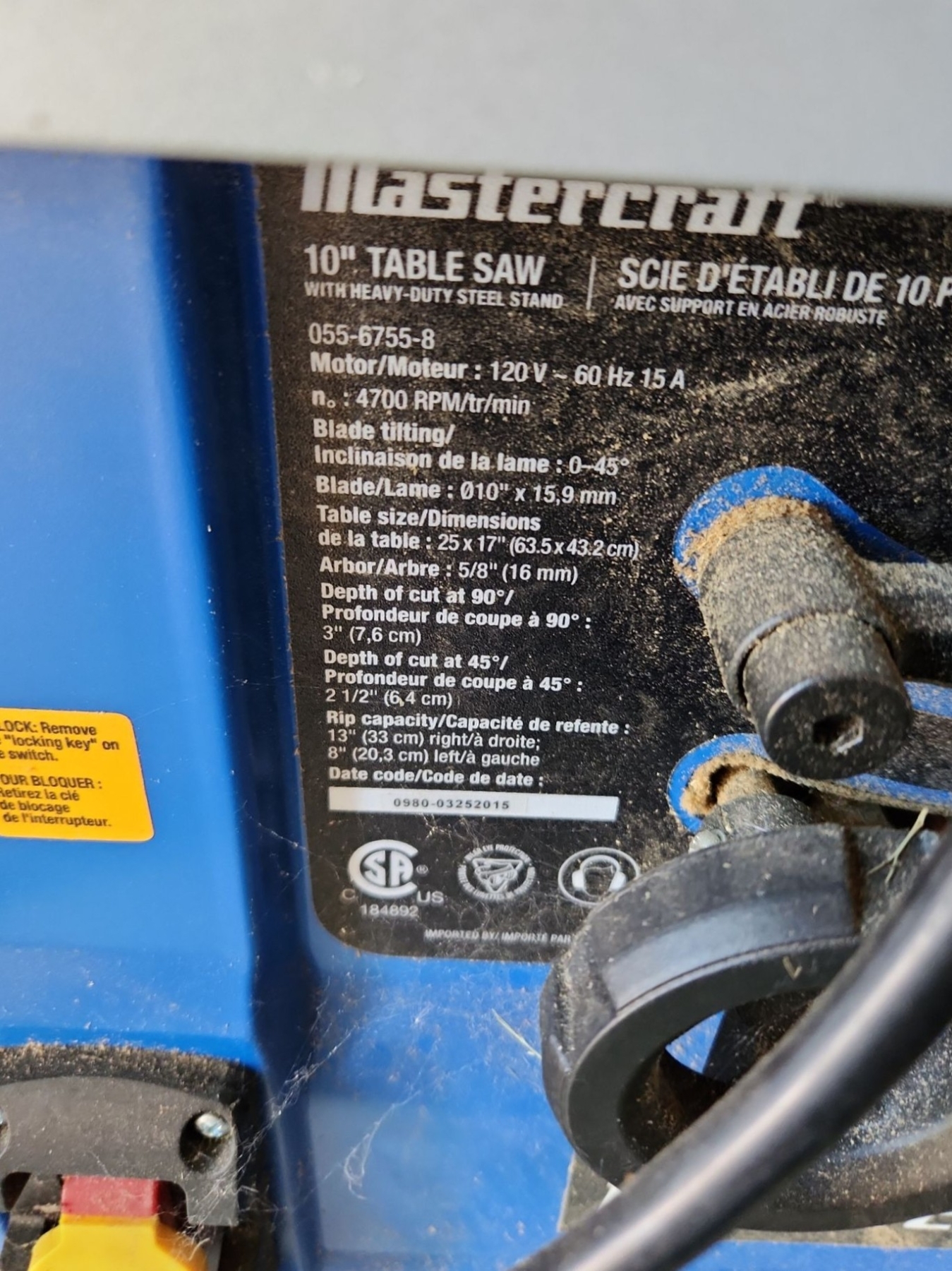 Mastercraft Model 055-6755-8 Table Saw, Bring Assistance