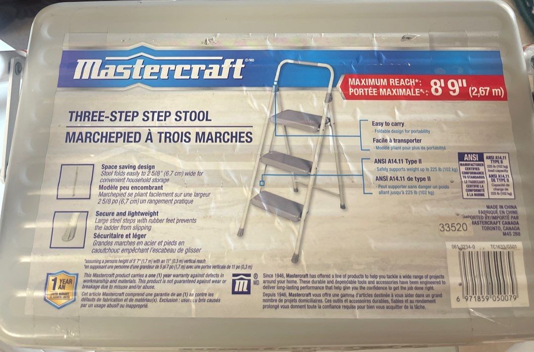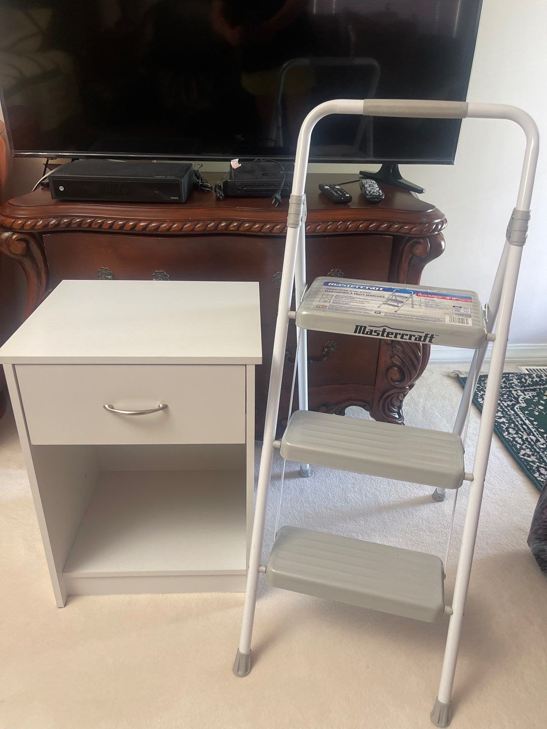 Mastercraft Three Step Step Stool & Small White End Table w/Drawer 16"x13"x24"tall