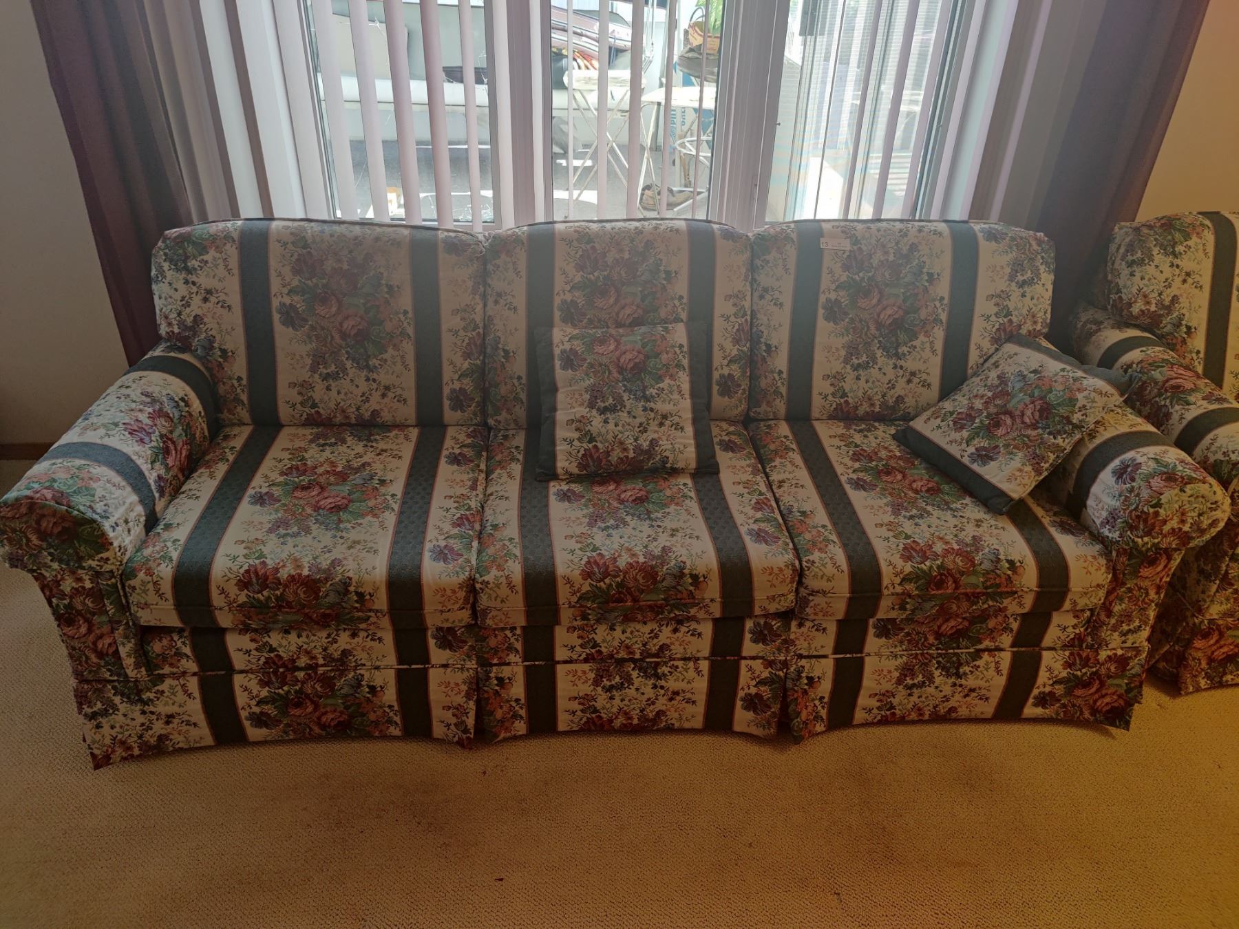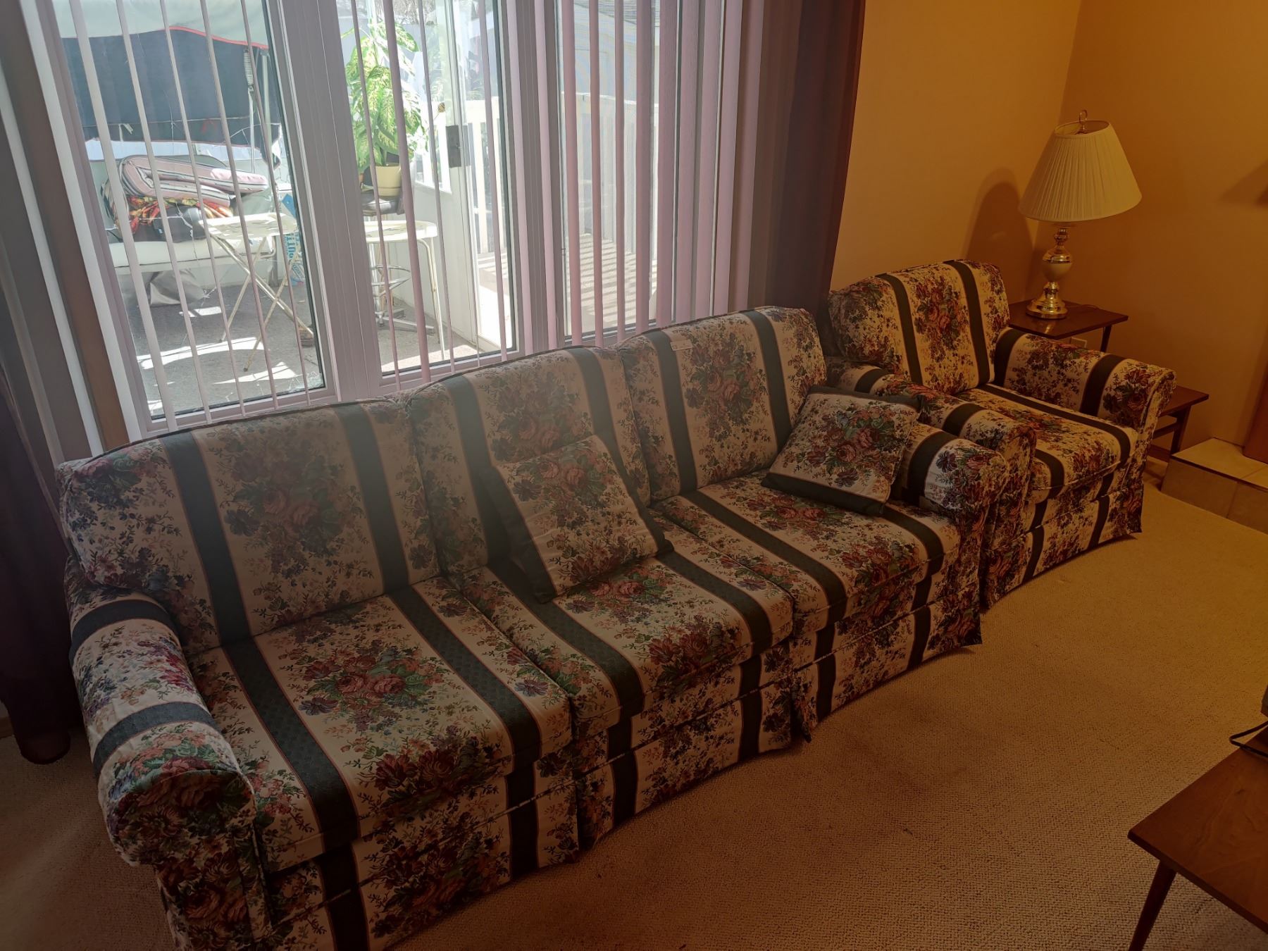 Matching Couch (84"w x 34"d) & Chair with Side Table & Lamp