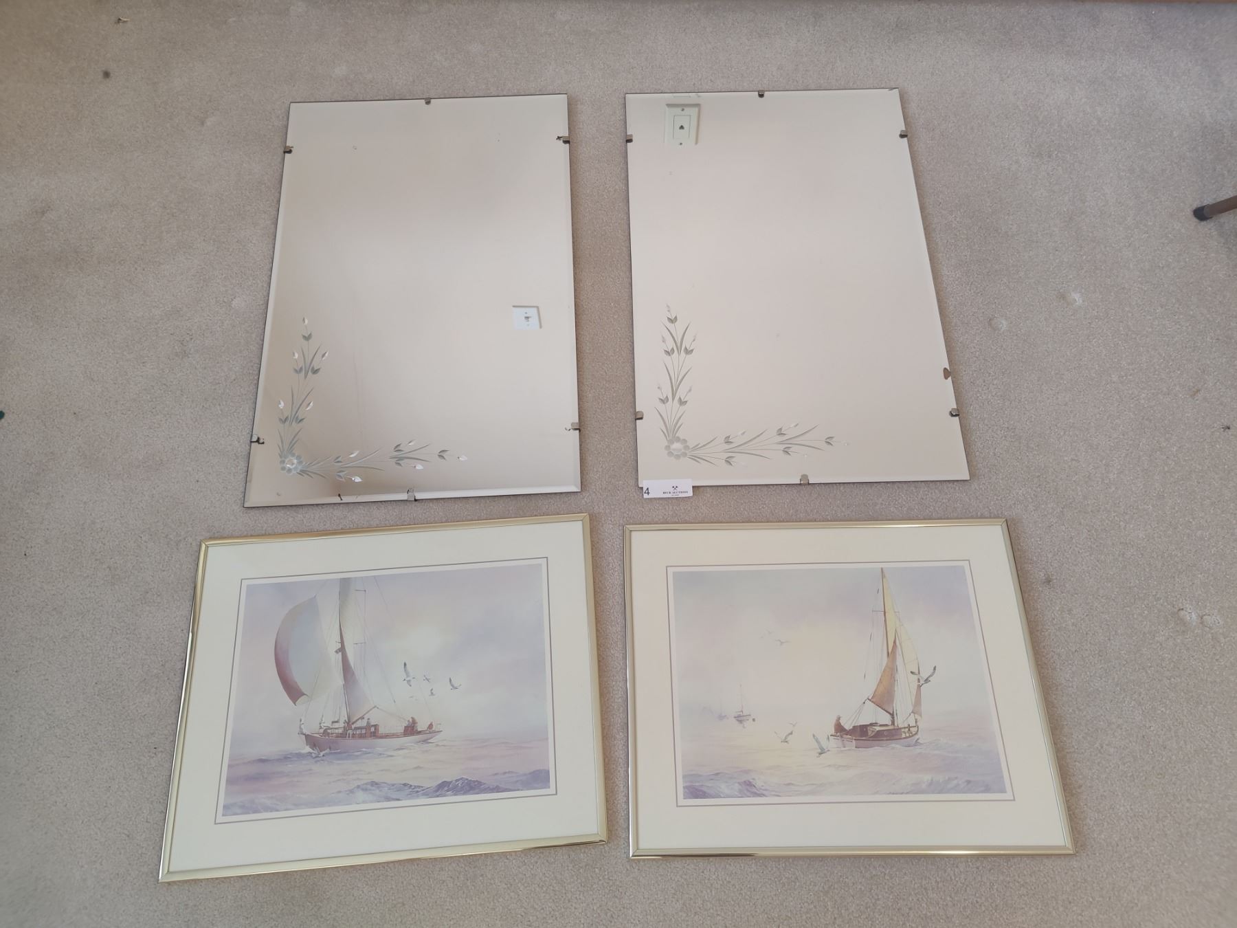 Matching Decorative Mirrors x2 (28"h x 18"w) & Sailing Ships Prints x2 (20'w x 16"h)