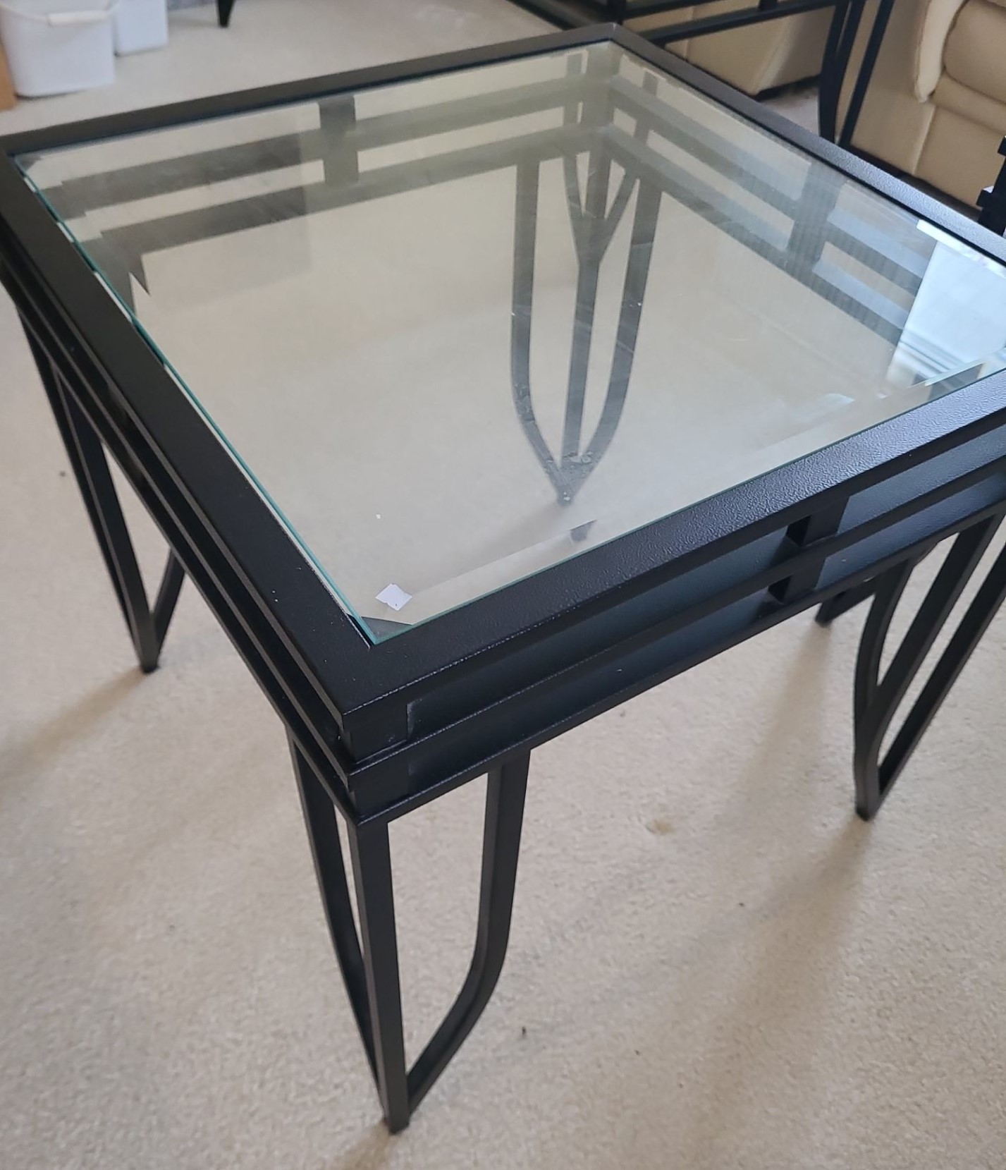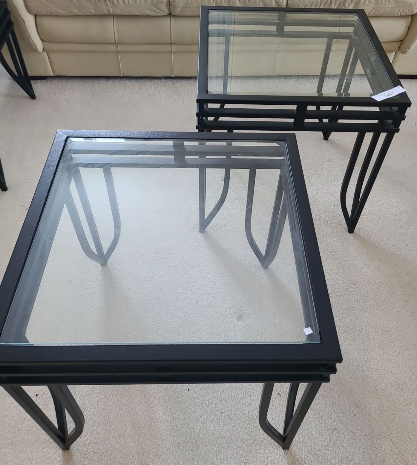 Matching Pair of Metal & Glass Coffee Tables 21 1/2 w, 21 h, 21 1/2 d