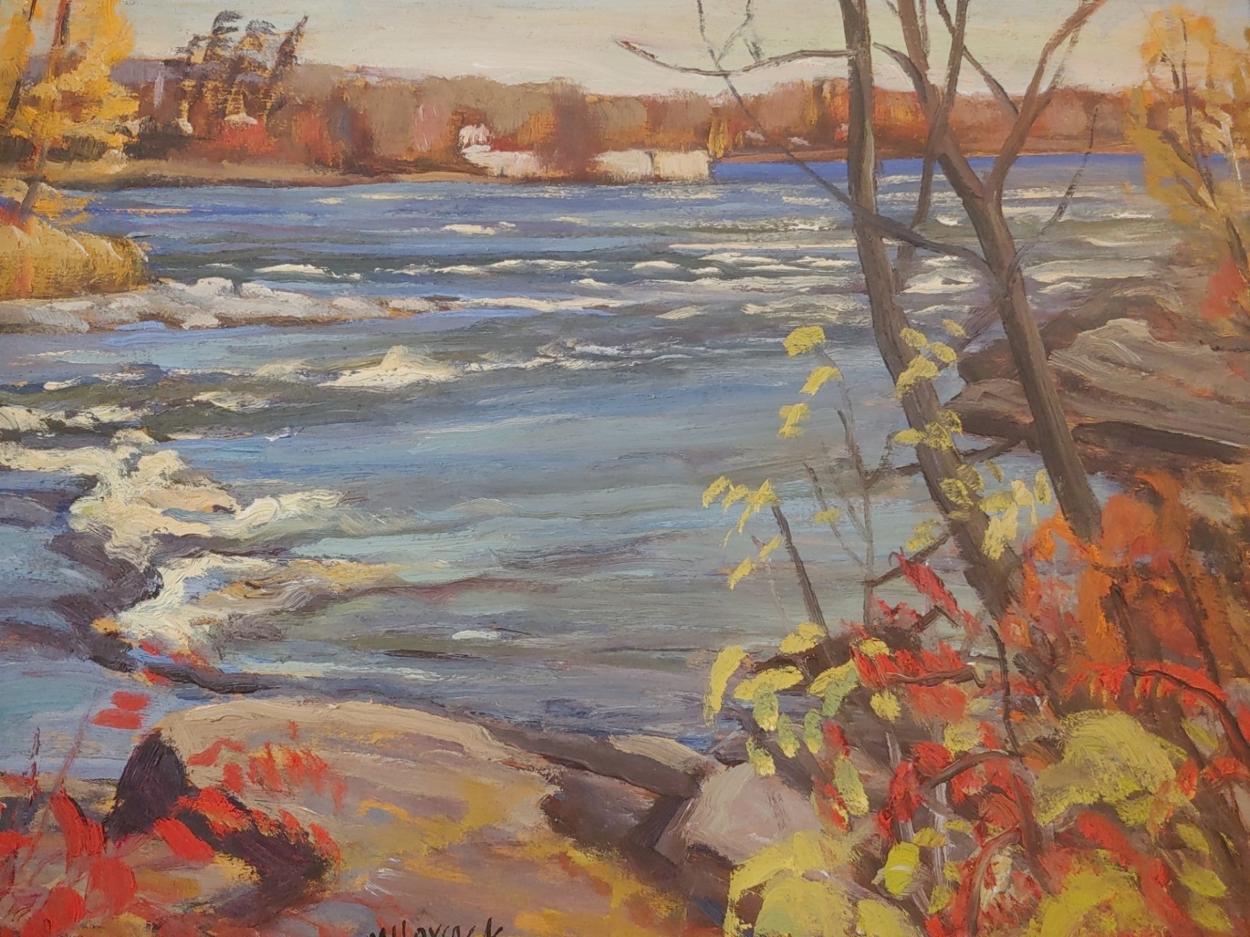 1. Autumn Rapids, oil on panel, signed/dated 1961 (11 x 14)
