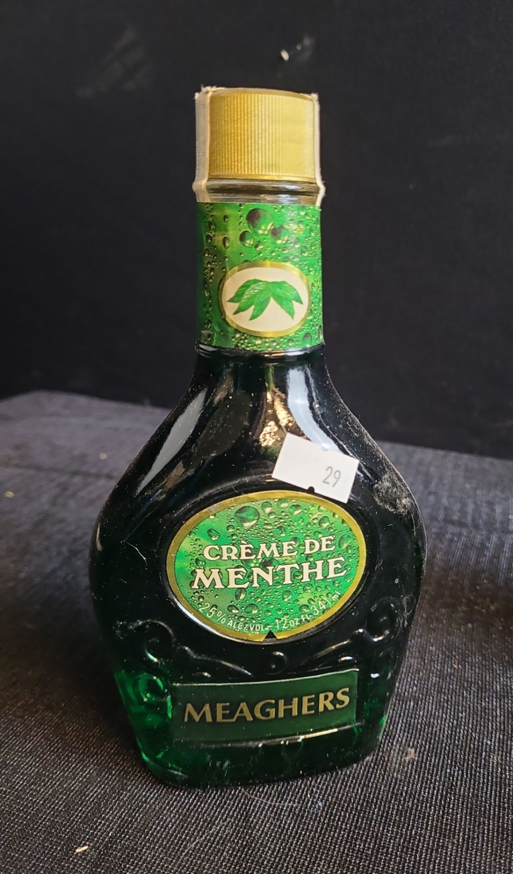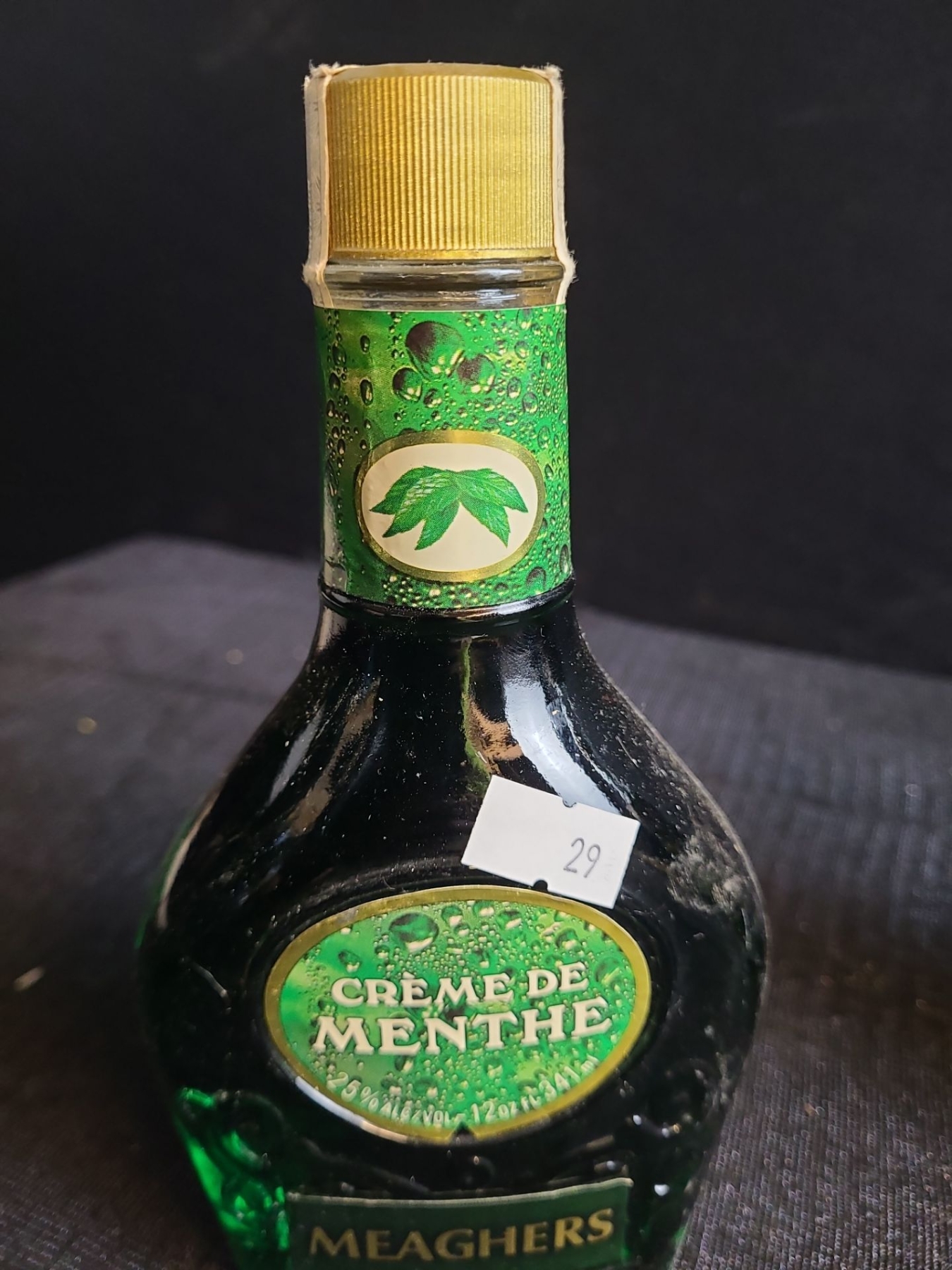 Meaghers is a mint flavored liqueur produced in Canada. It is a sweet liqueur with a thick texture. Common ingredient in cocktails