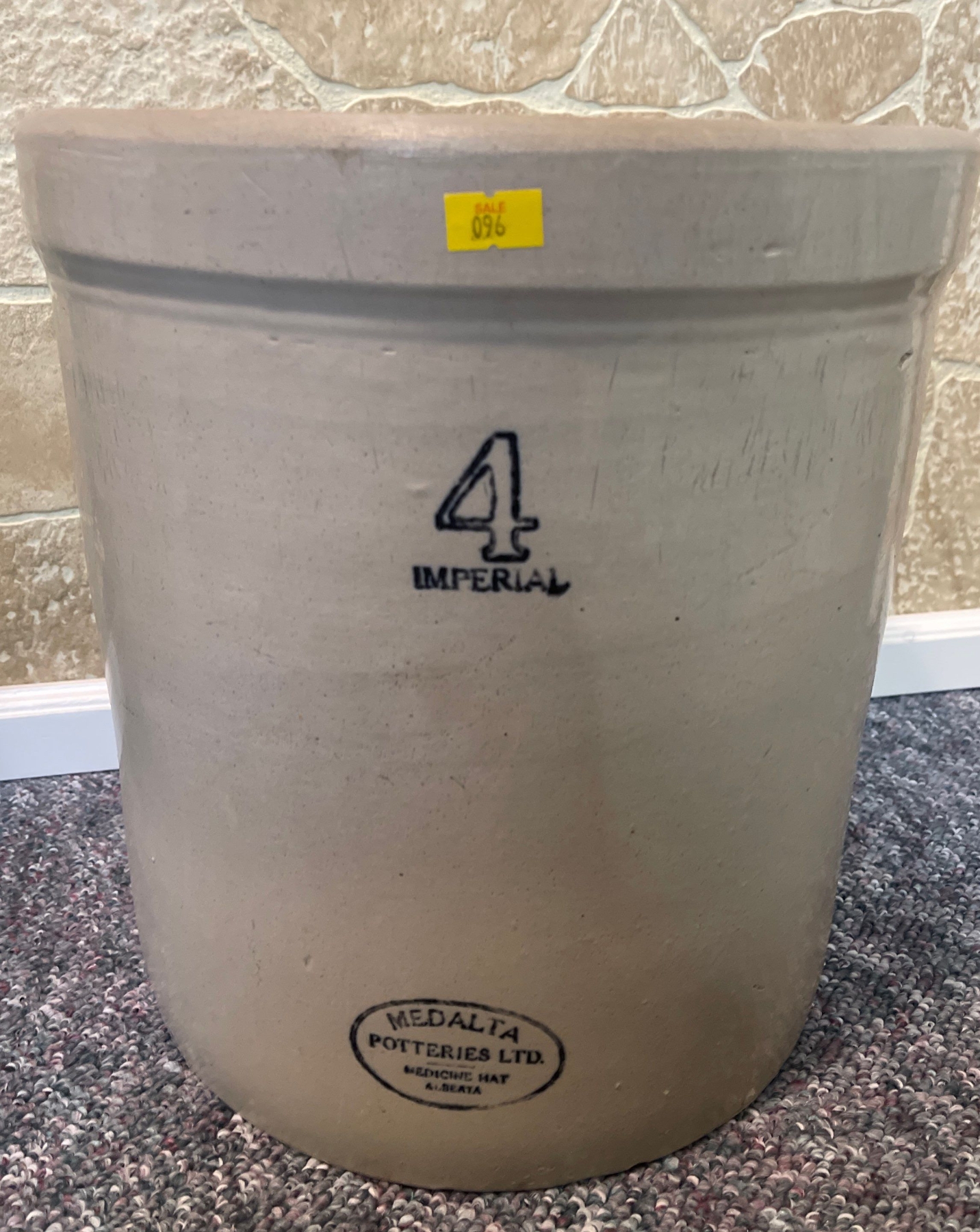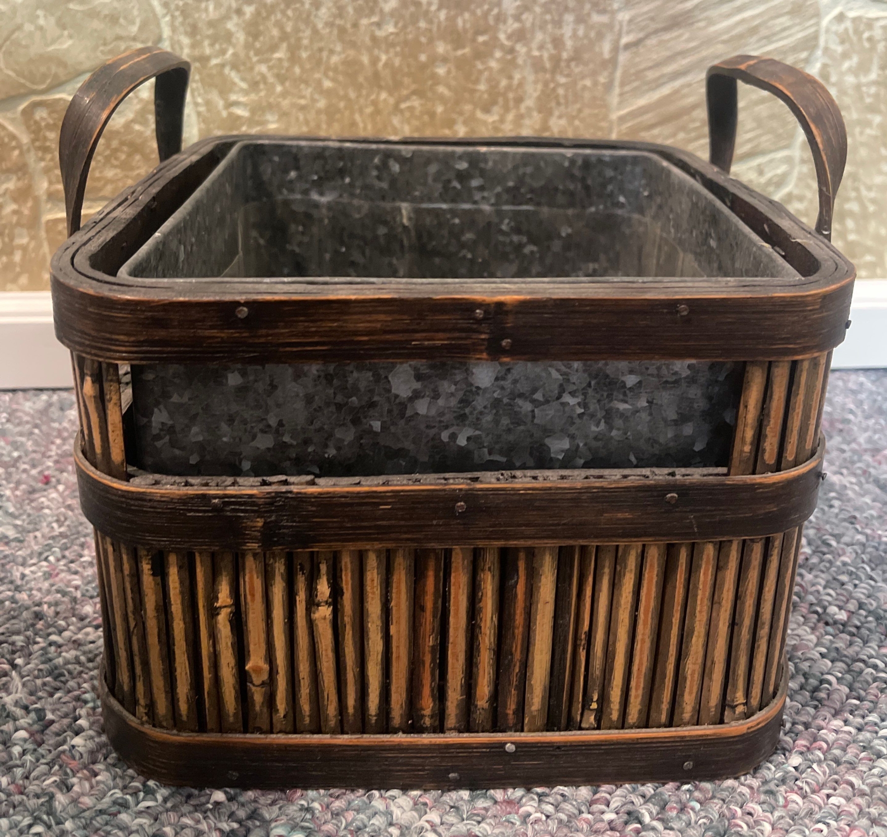 Medalta 4 - Antique Canister w/ Decorative Woven Basket