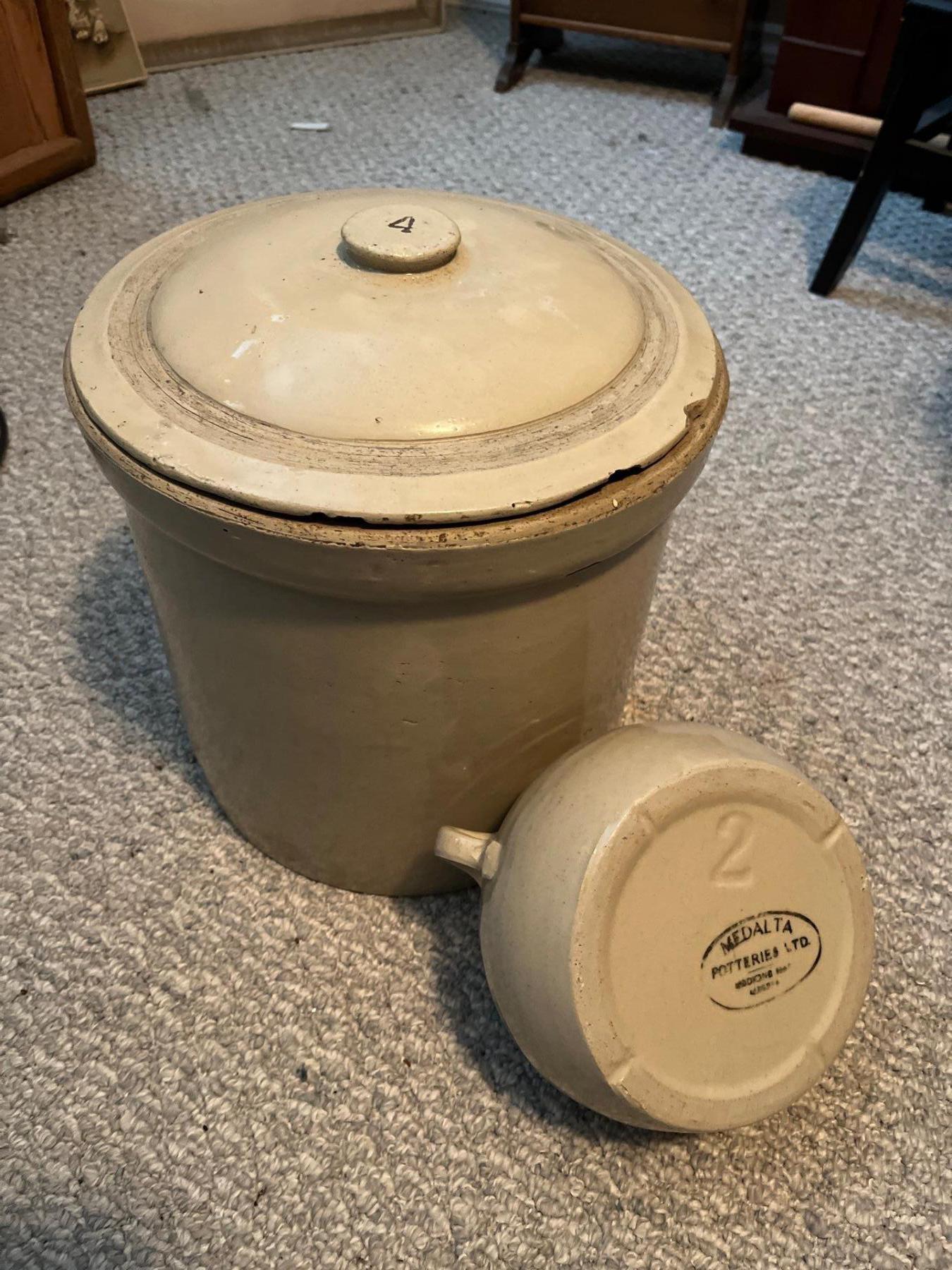 Medelta crock size 4 and small Medelta bowl made in Alberta in Medicine Hat