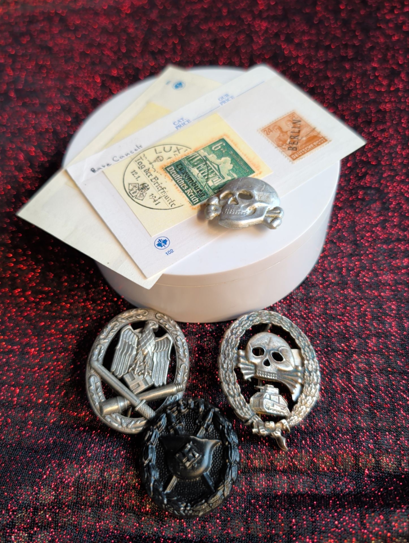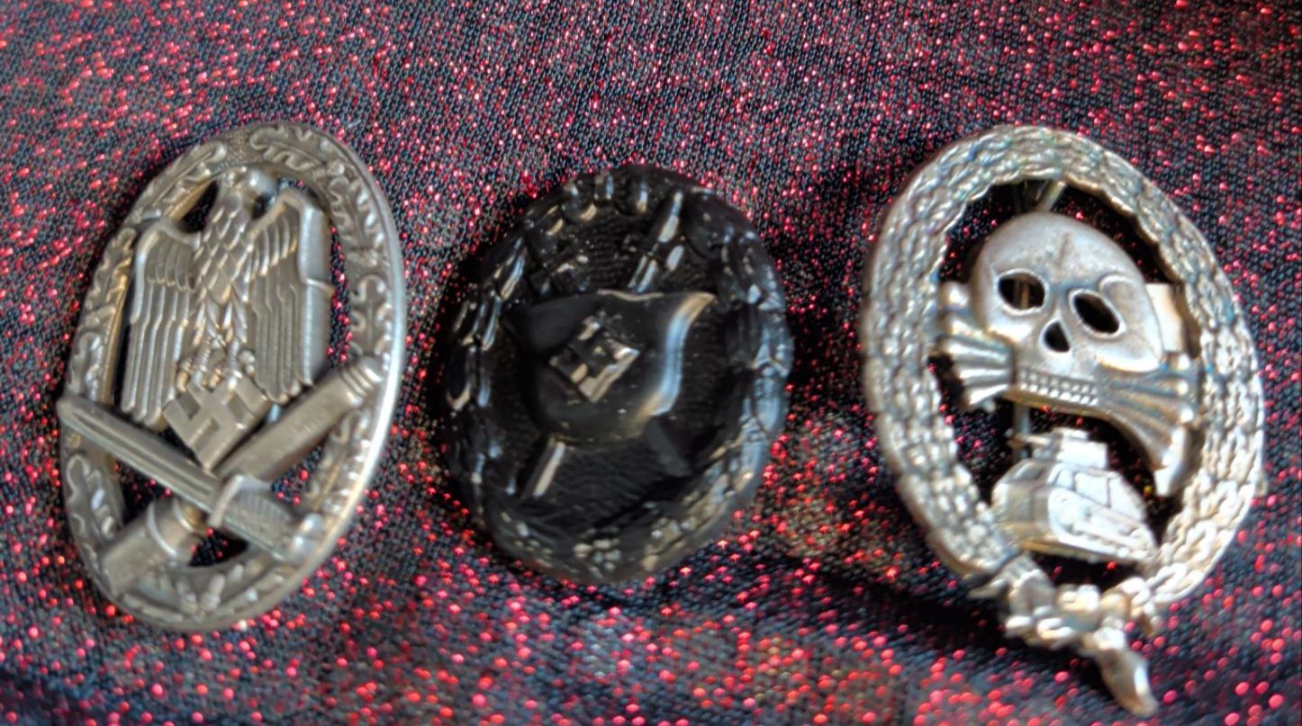 Silver-Grade Legion Condor Wound Badge, a Black-Grade Legion Condor Wound Badge, and a Legion Condor Tank Badge