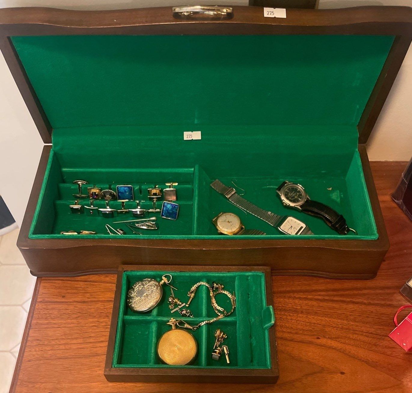 Mens Fashion Accessories w/ Velvet LIned Wood Jewlery Box Cuff Links Watches & More