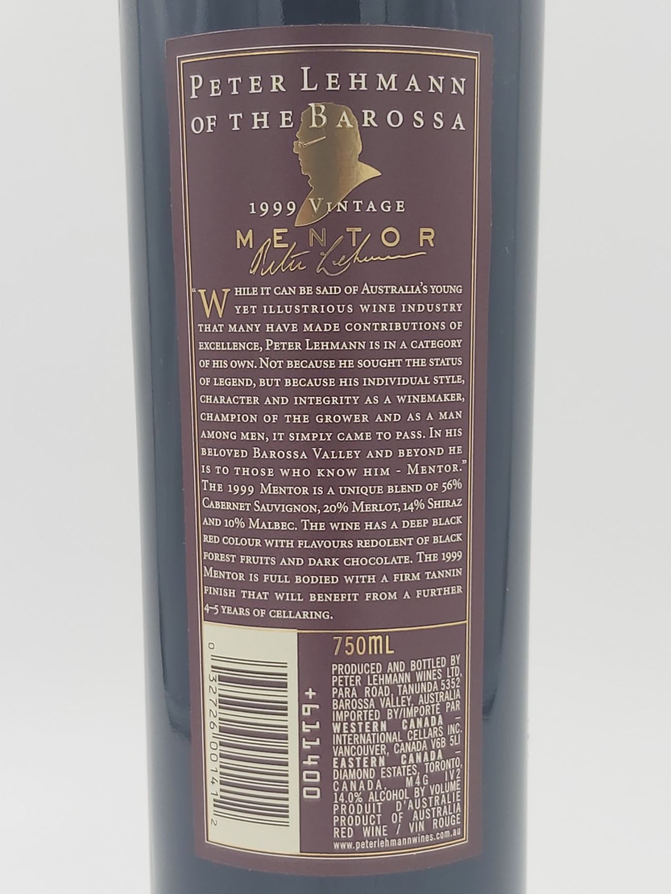 Mentor Peter Lehmann Australia Red Wine 1999 Vintage 14.0%