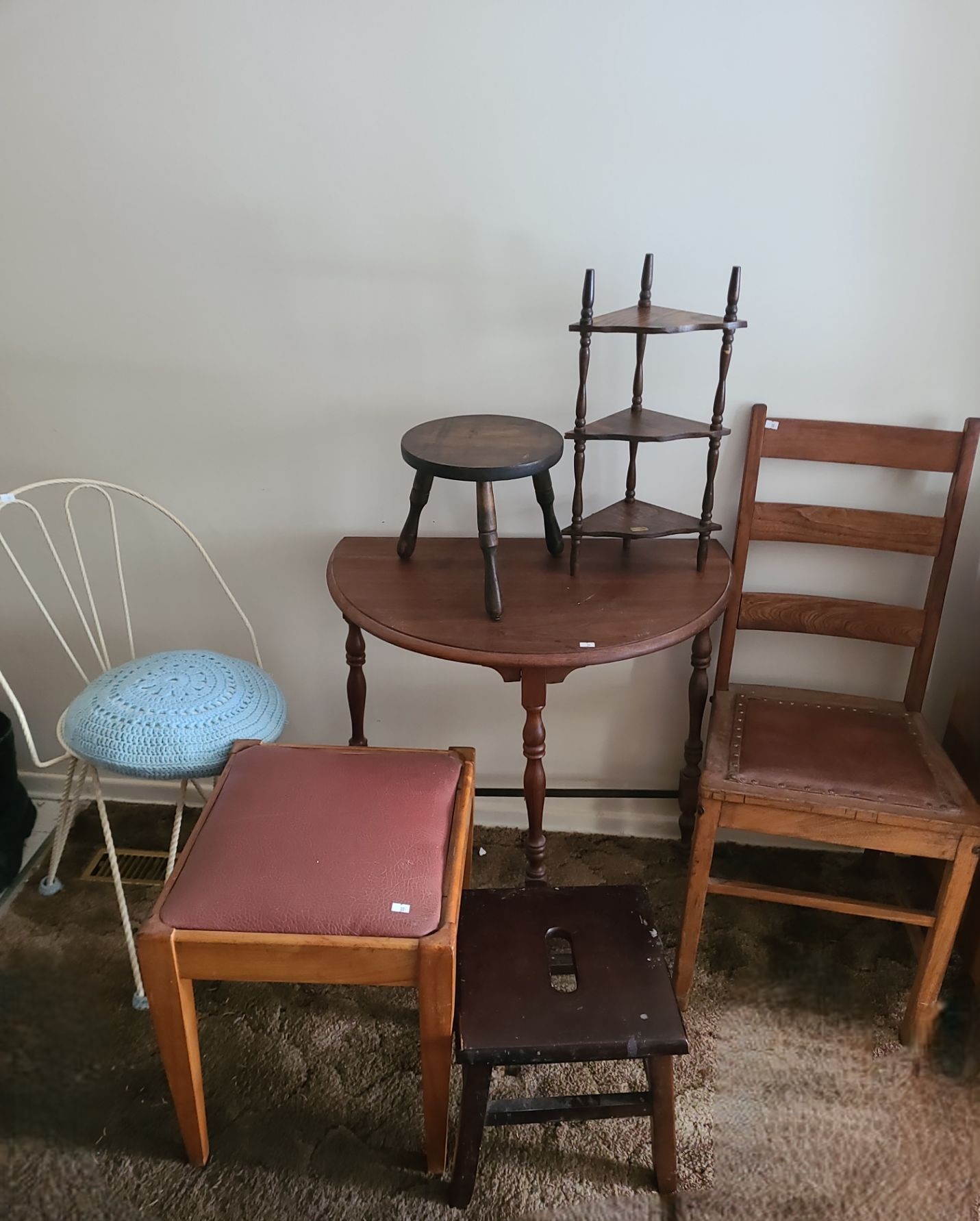 Metal Chair 17 W, 16 D, 36 T, Side Table 27 W, 16 D, 26 T, Stool, and More!