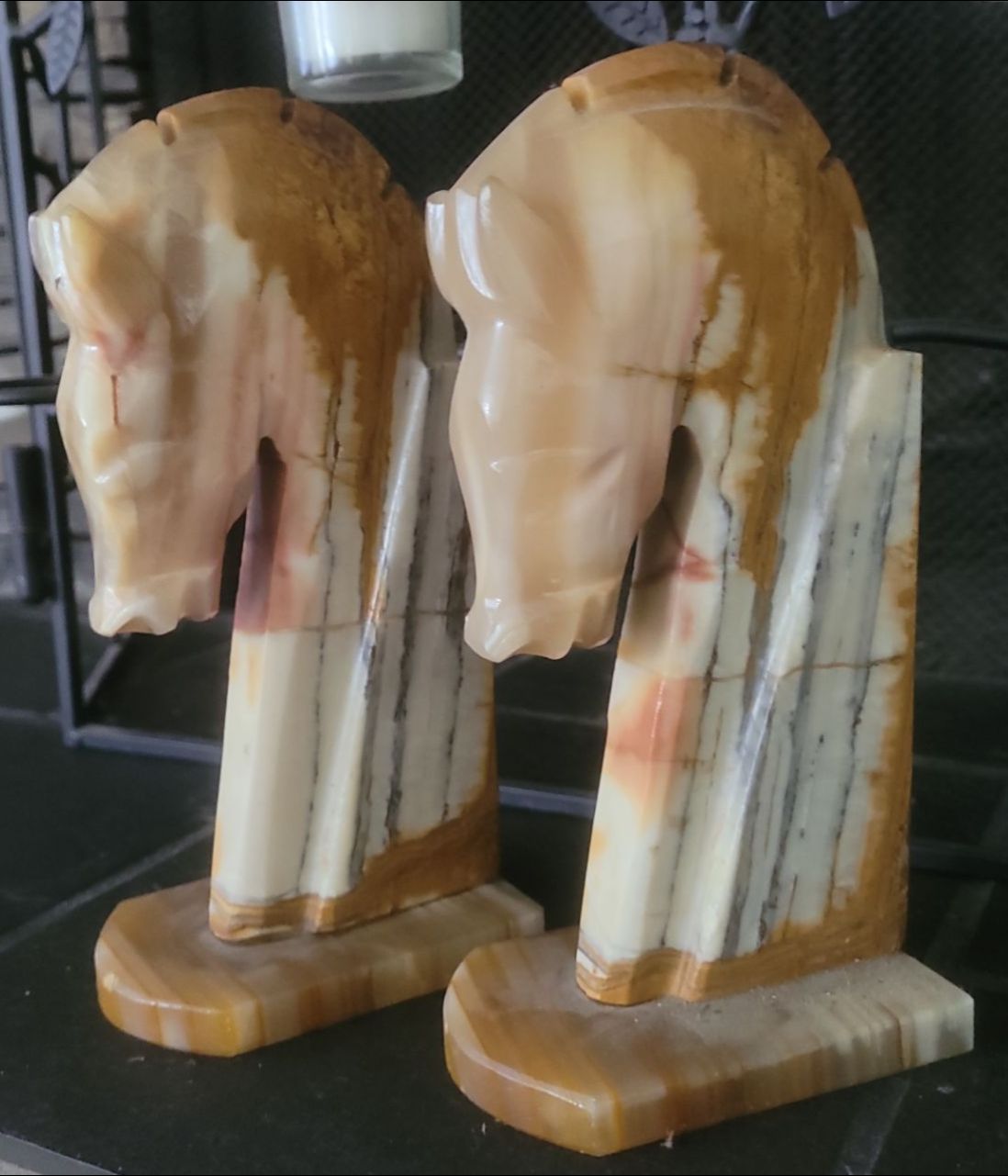 Metal Fireplace Screen Style Candle Holder & Carved Onyx Horse Book Ends (2)