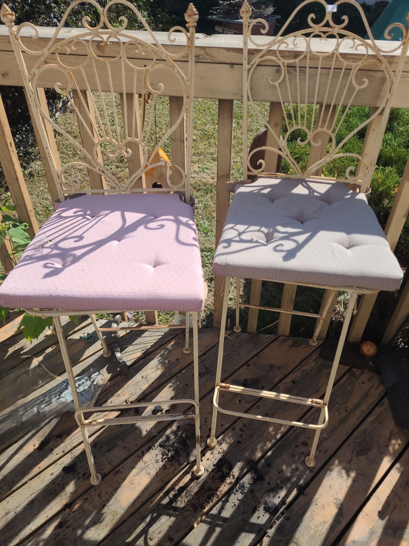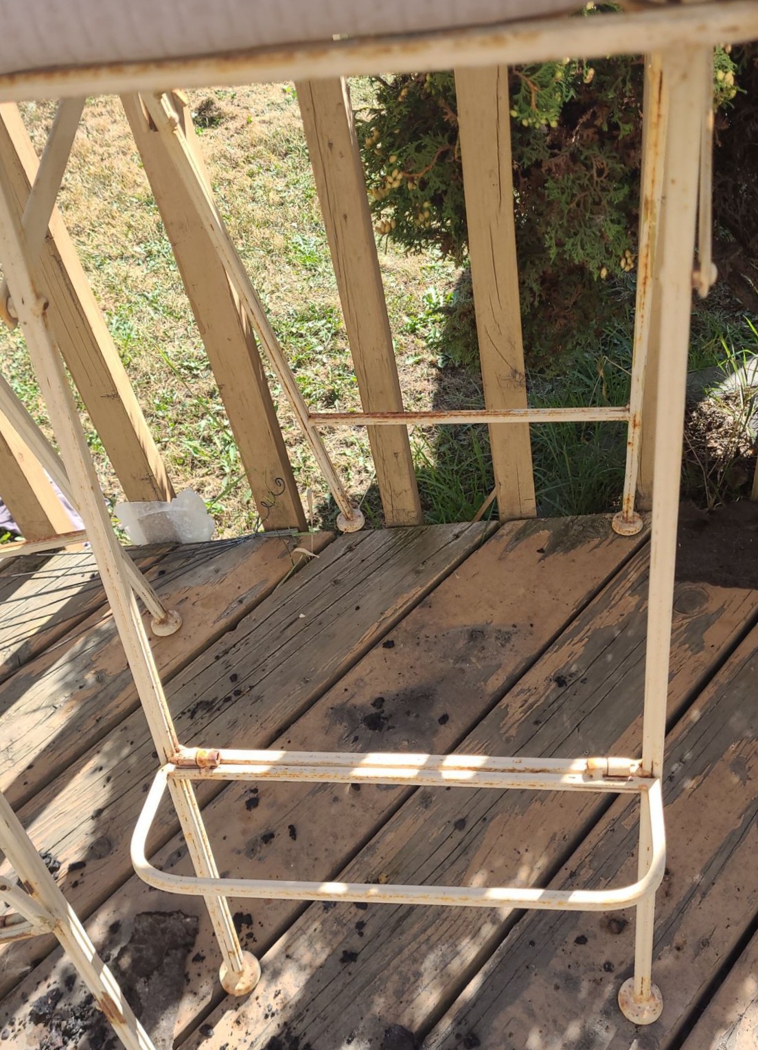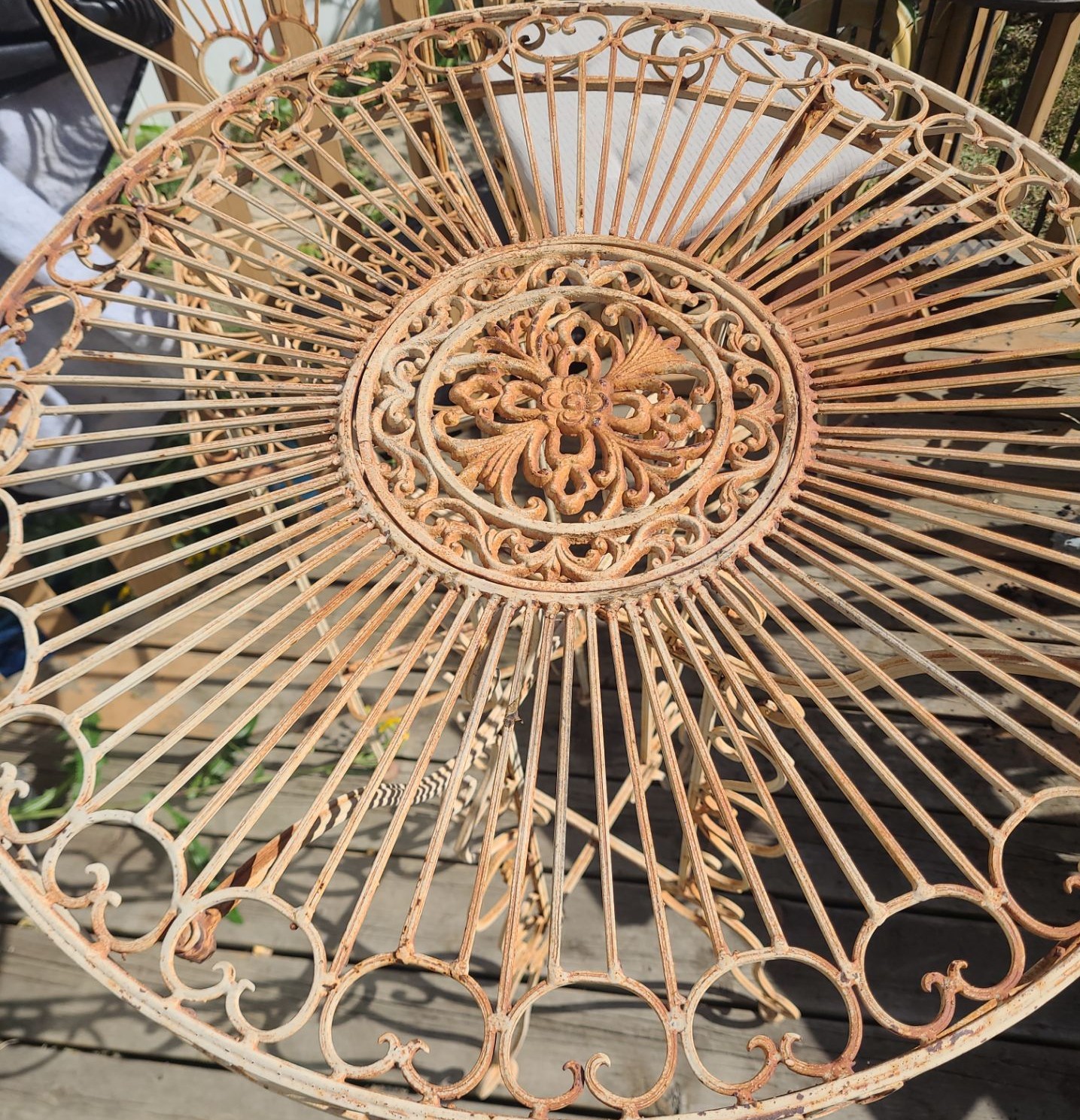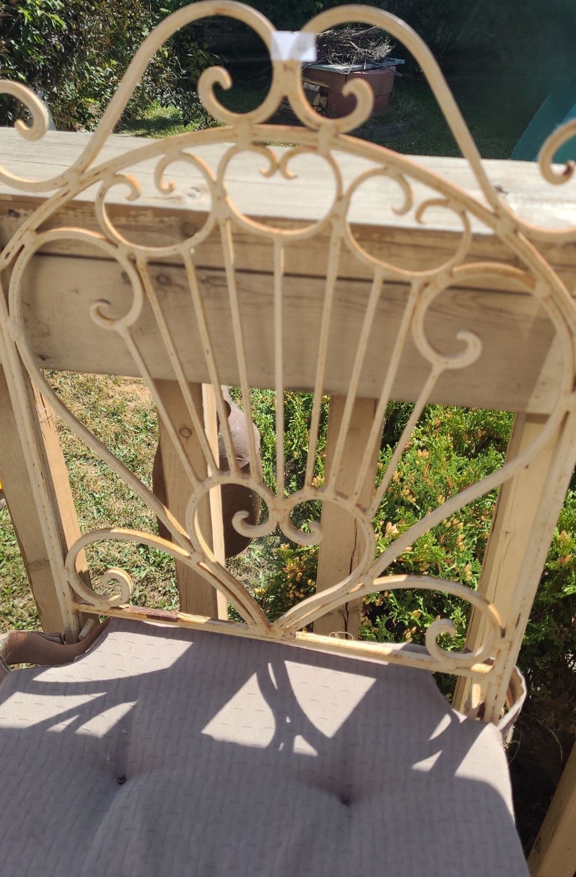 Metal Garden Set: Table 28" Top, 43 T, Four Chairs 19 W, 19 D, 46 T, Corner Shelf 20 W, 14 D, 55 T