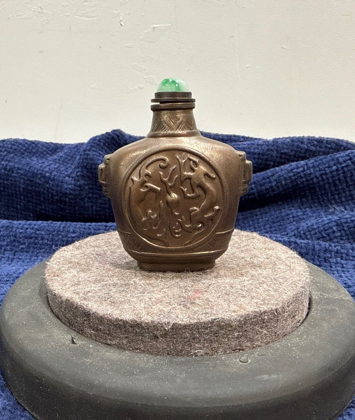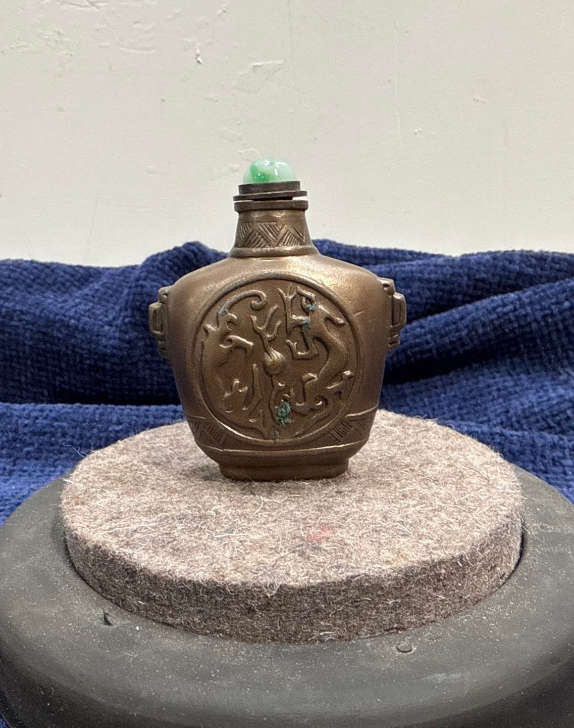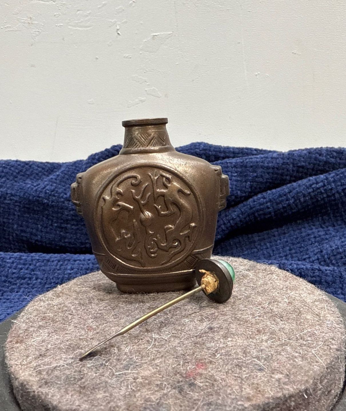 Metal Snuff Bottle with Spoon 3.25H
