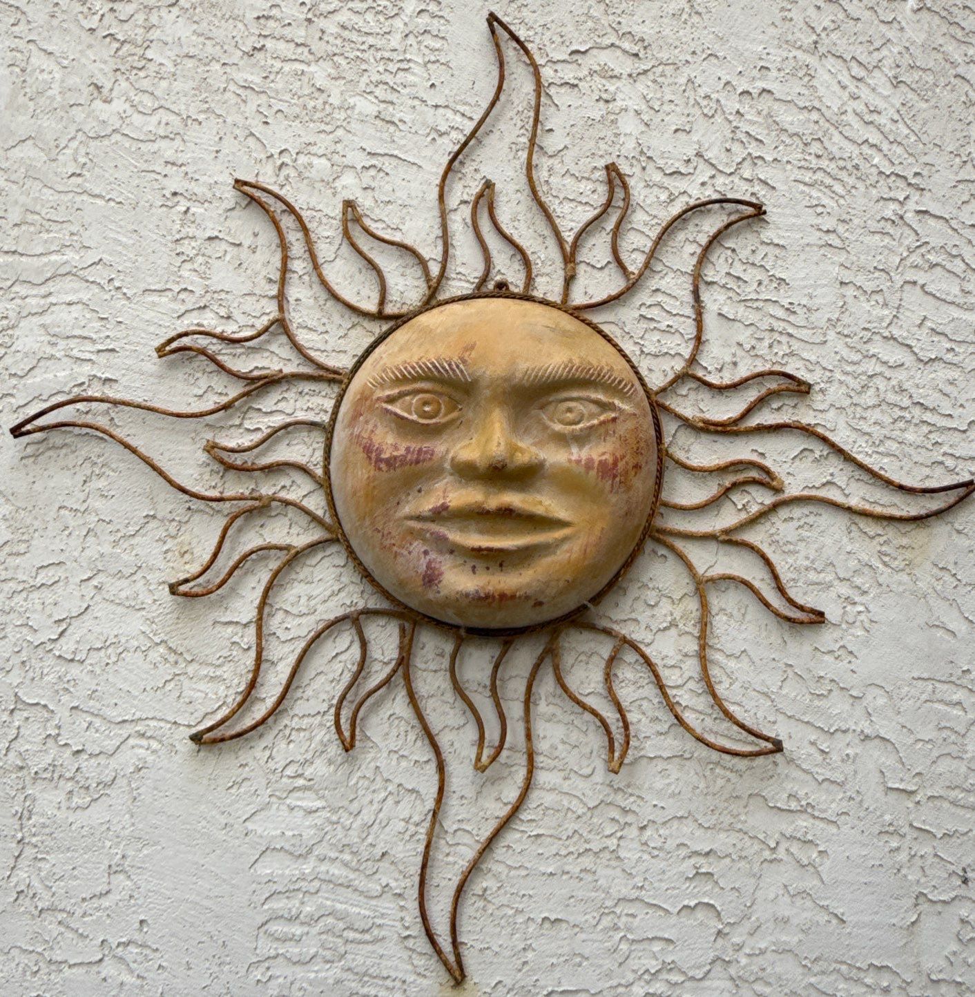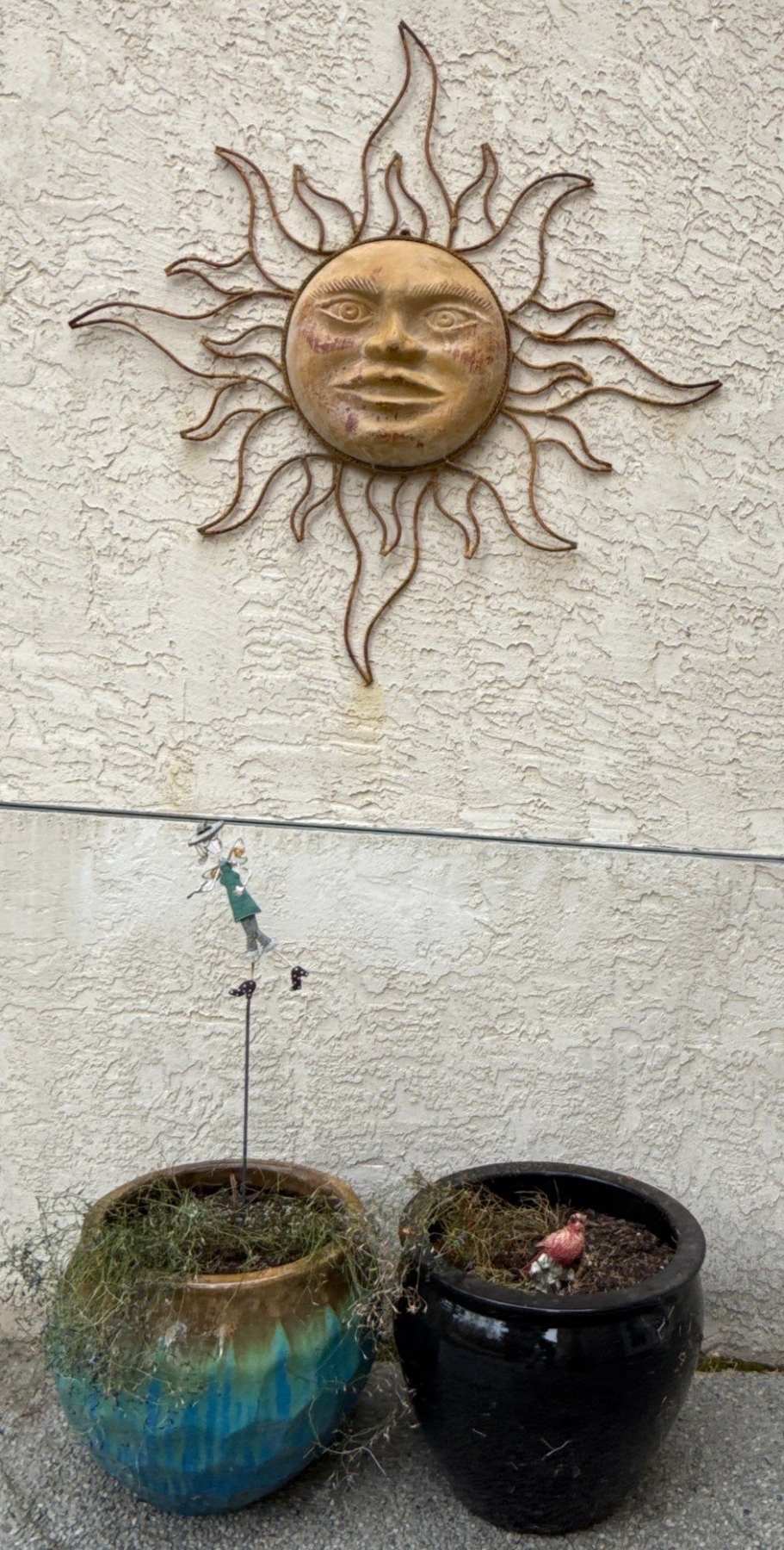 Metal Sun-Faced Outdoor Decor w/ Heavy Duty Glass Planters/Pots For Plants