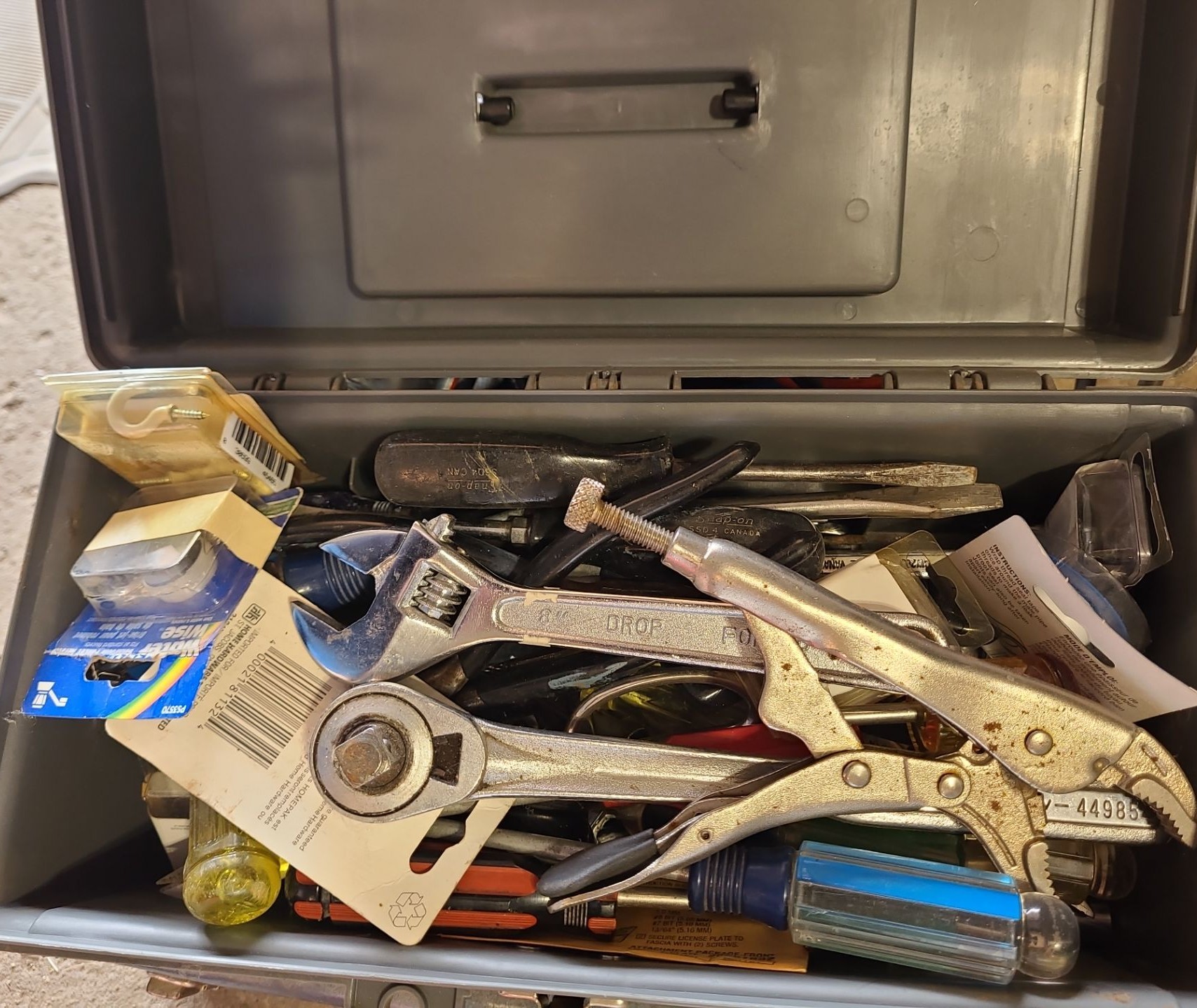 Metal Toolbox 1 9W, 7 D, 7 T w/ Contents, Extension Cords, Saws, Hardware and More!