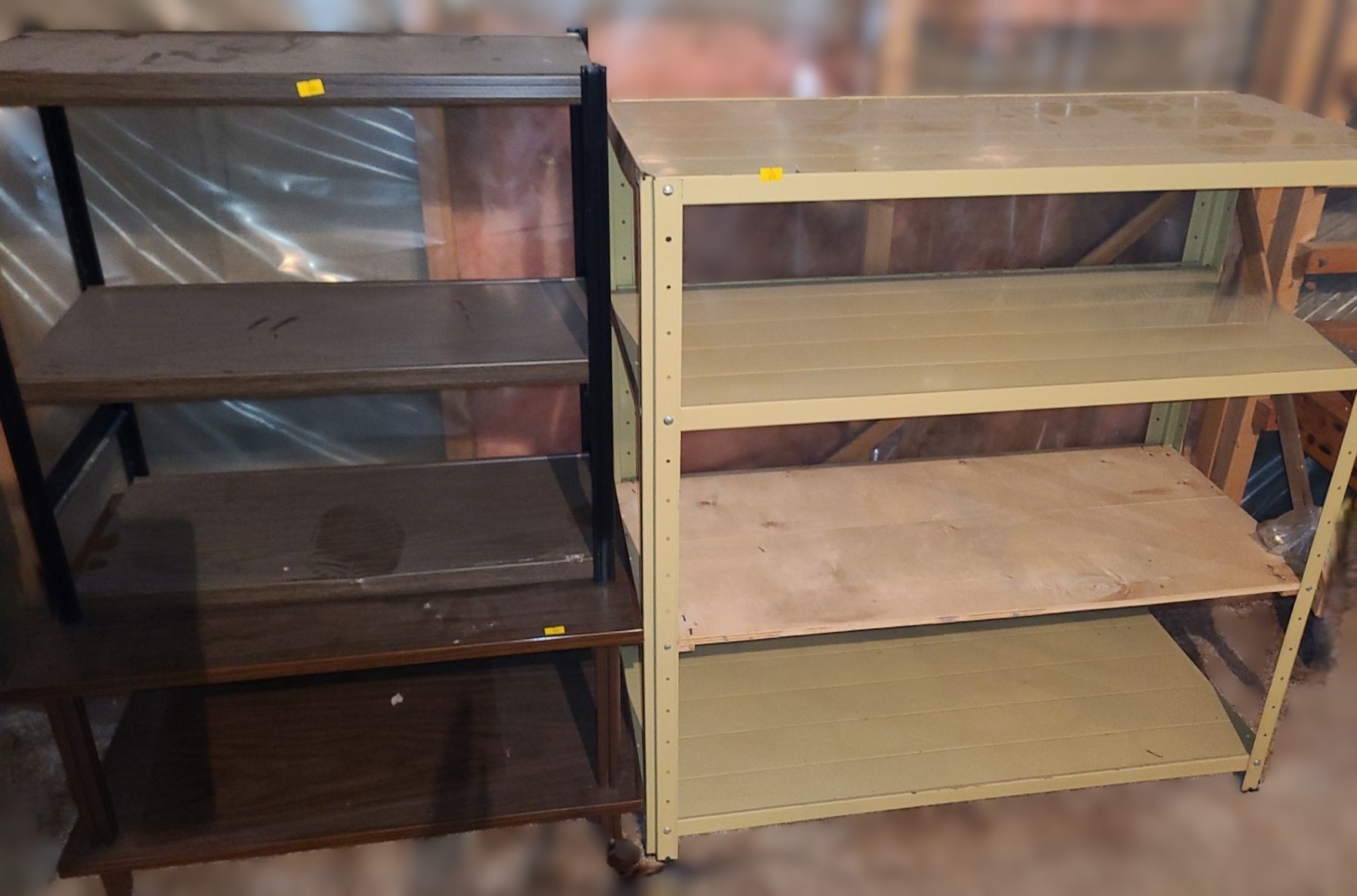 Metal Utility Shelves Brown: 25 W, 11 D, 24 T and Beige: 36 W, 15 D, 37 T - TV Cart 27 W, 16 D, 16 T