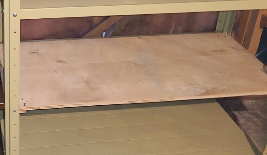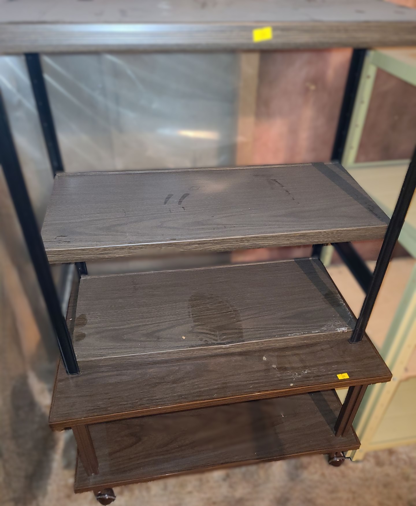 Beige Shelf Has Been Repaired w/ Plywood as Shown, TV Cart is on Wheels