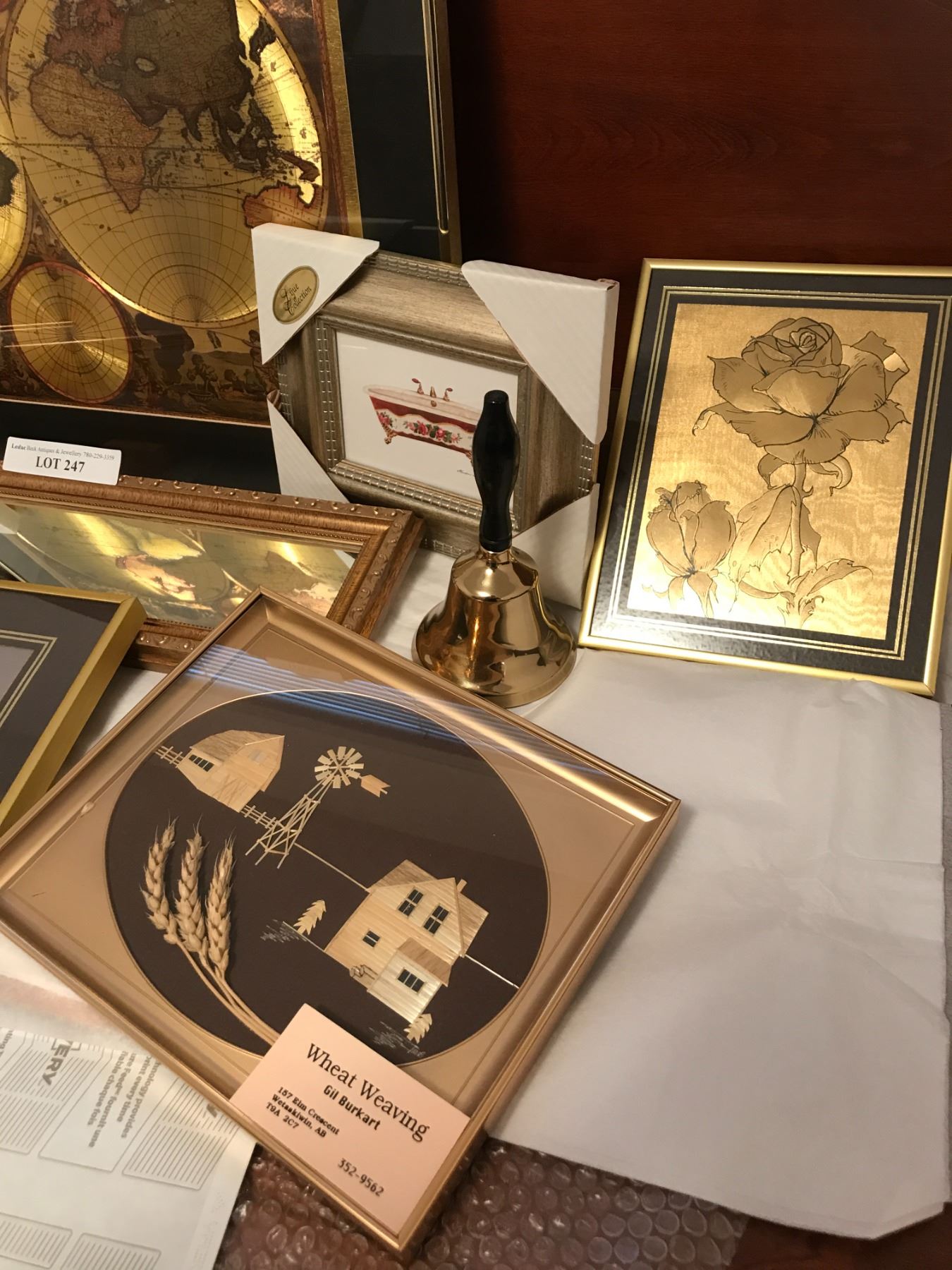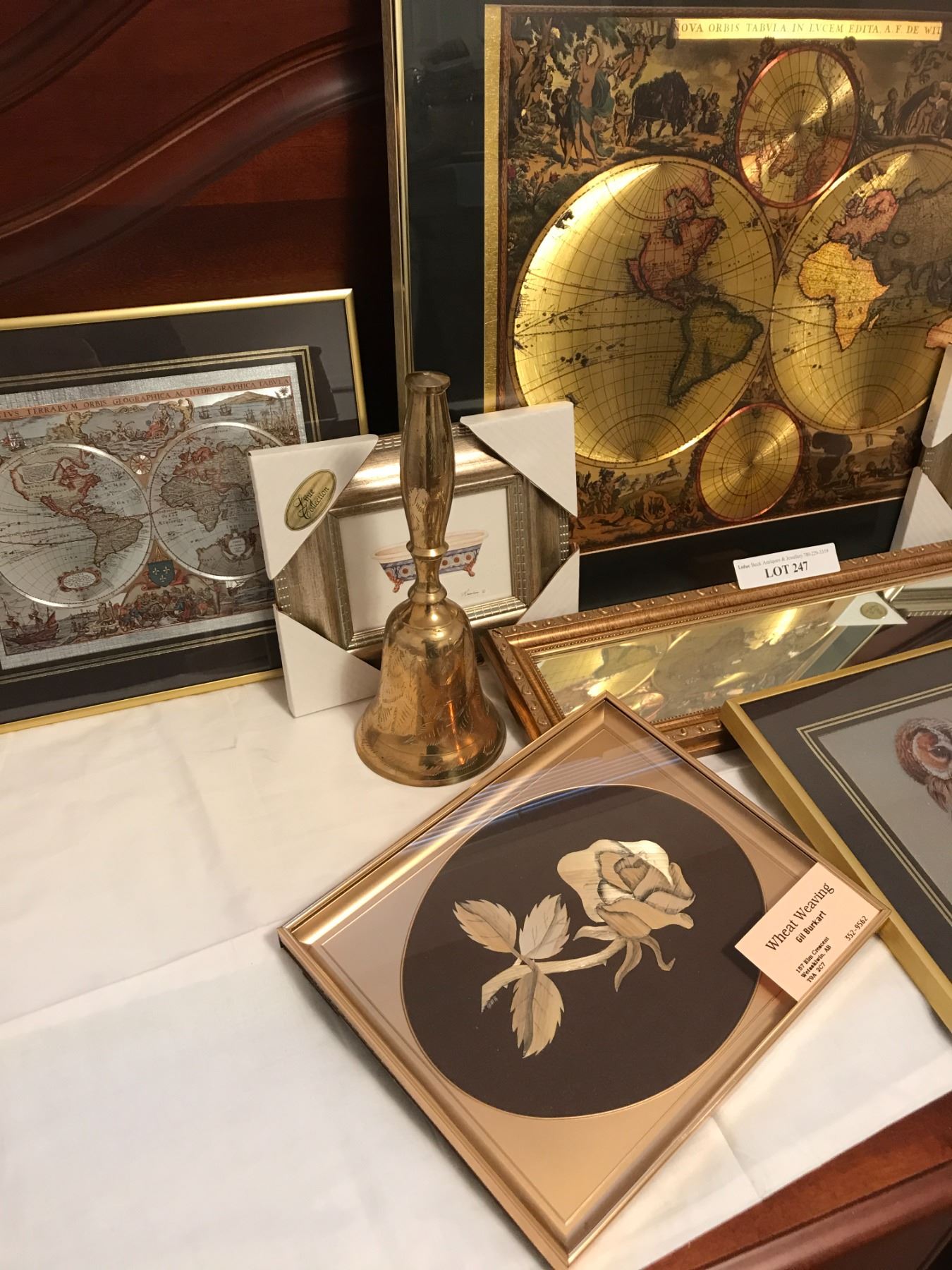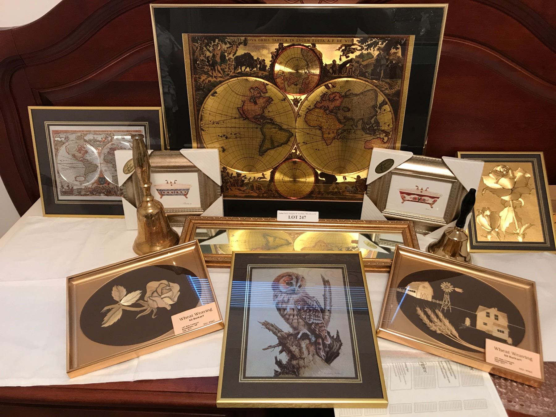 Metal World Gil BurkartMaps, 2 Bells, Wheat Weavings by Gil Burkart, Mirror, Owl Picture, & Bathtub