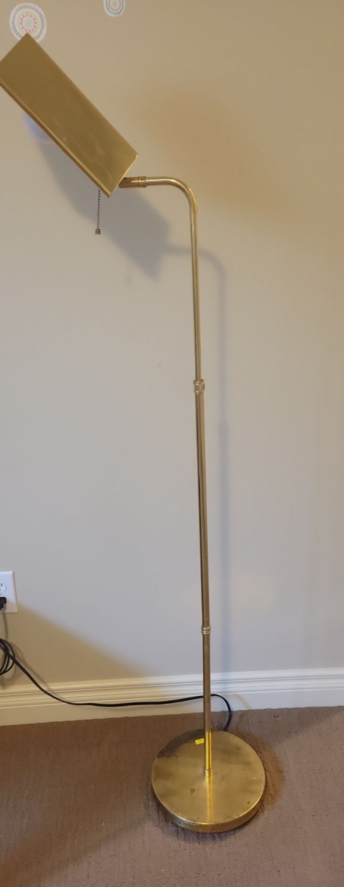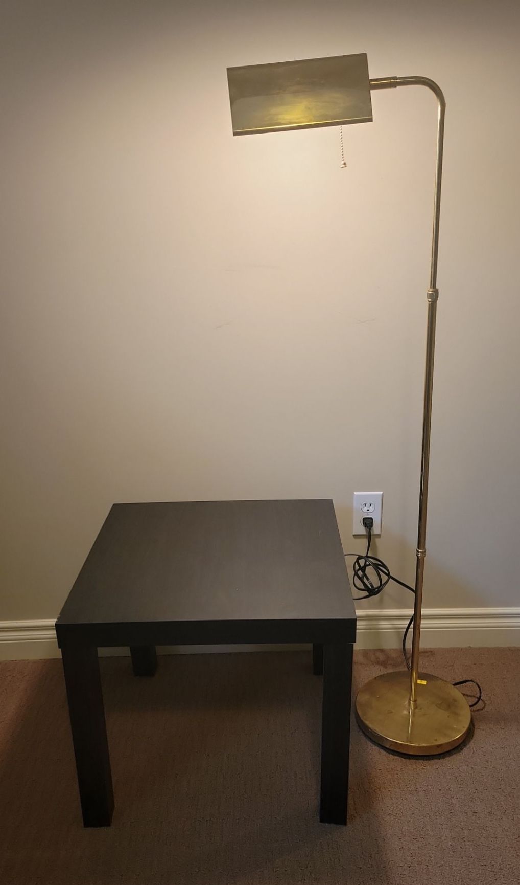 Mid Century Modern - Brass Adjustable Height Swing Arm Pull String Floor Lamp w/ End Table 22T