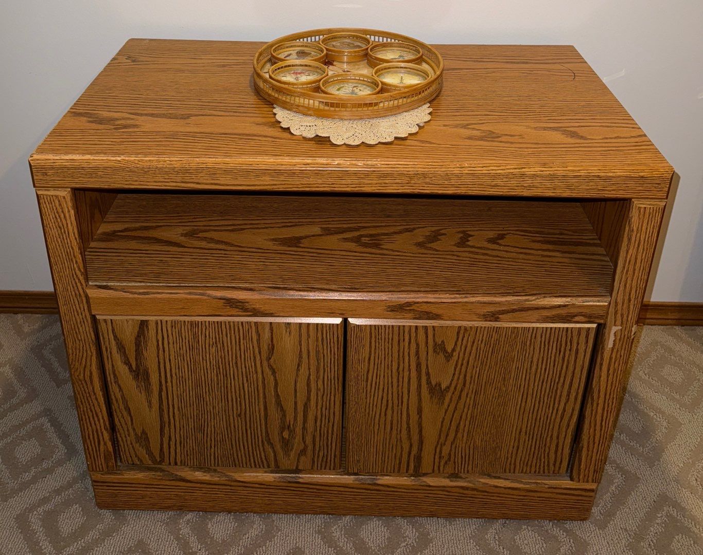 Mid Century Oak Cabinet / Console Table 25x26x18