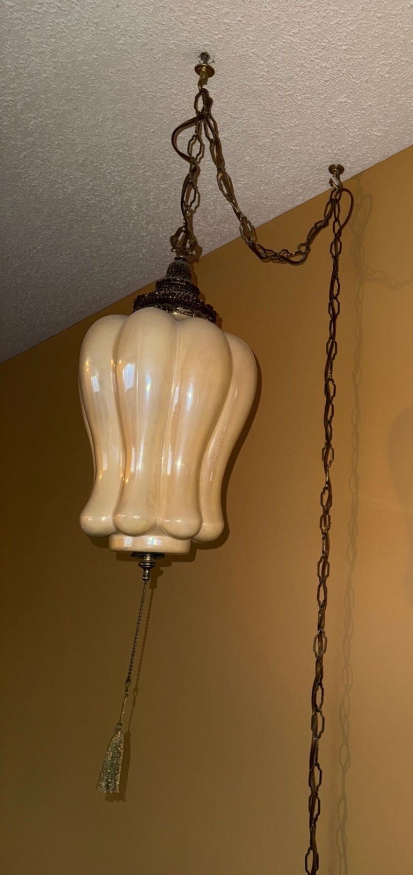 Mid Century Swag Lamp w/Pull Chain ON/OFF Switch