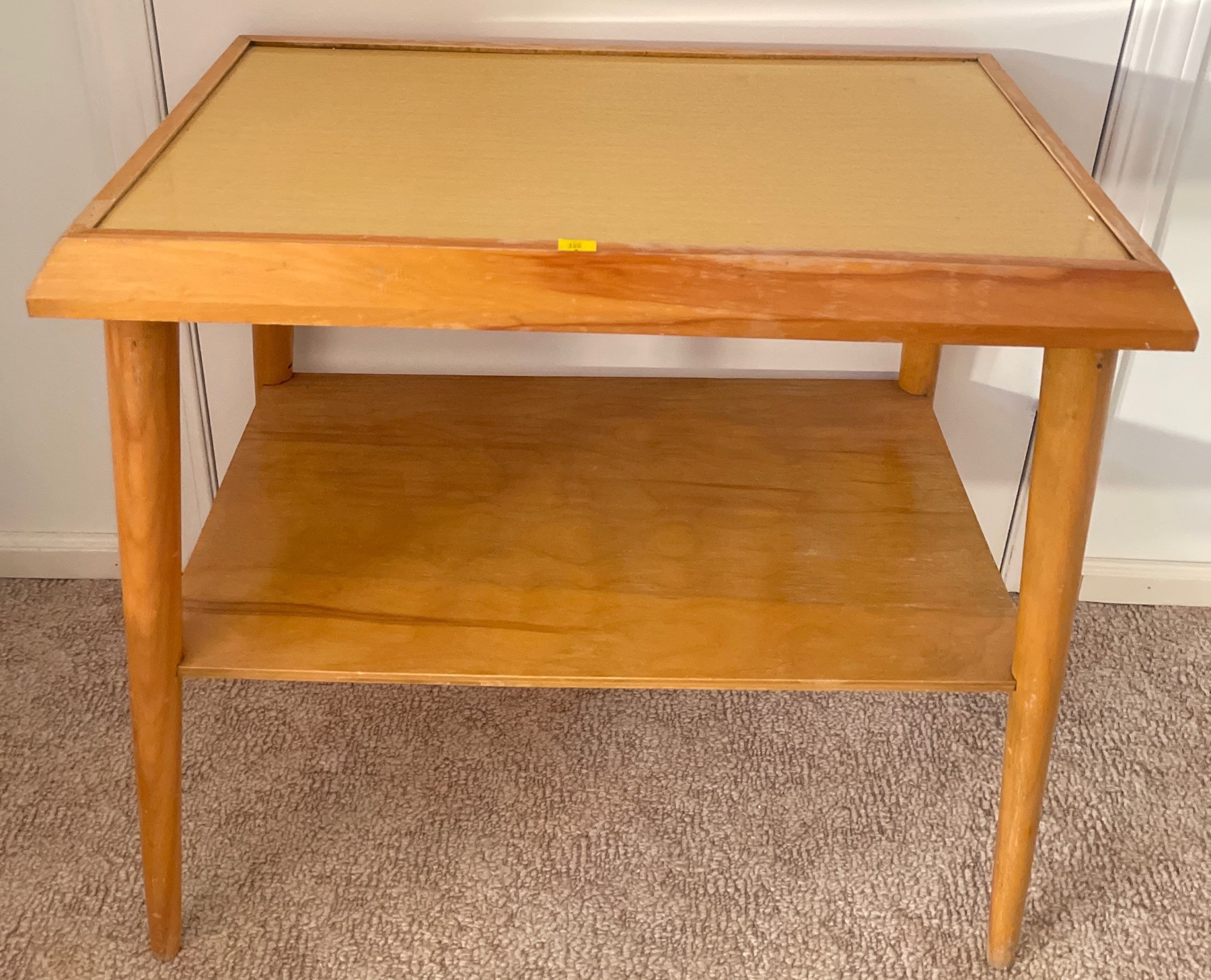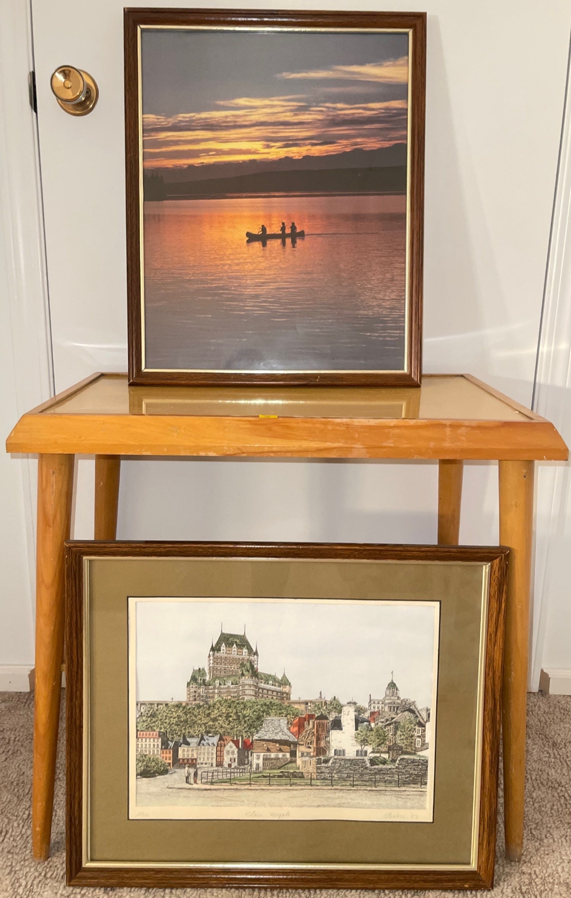 Mid Century Teak 2 Tiered End Table 25x14x24 w/ Wall Art 15x19