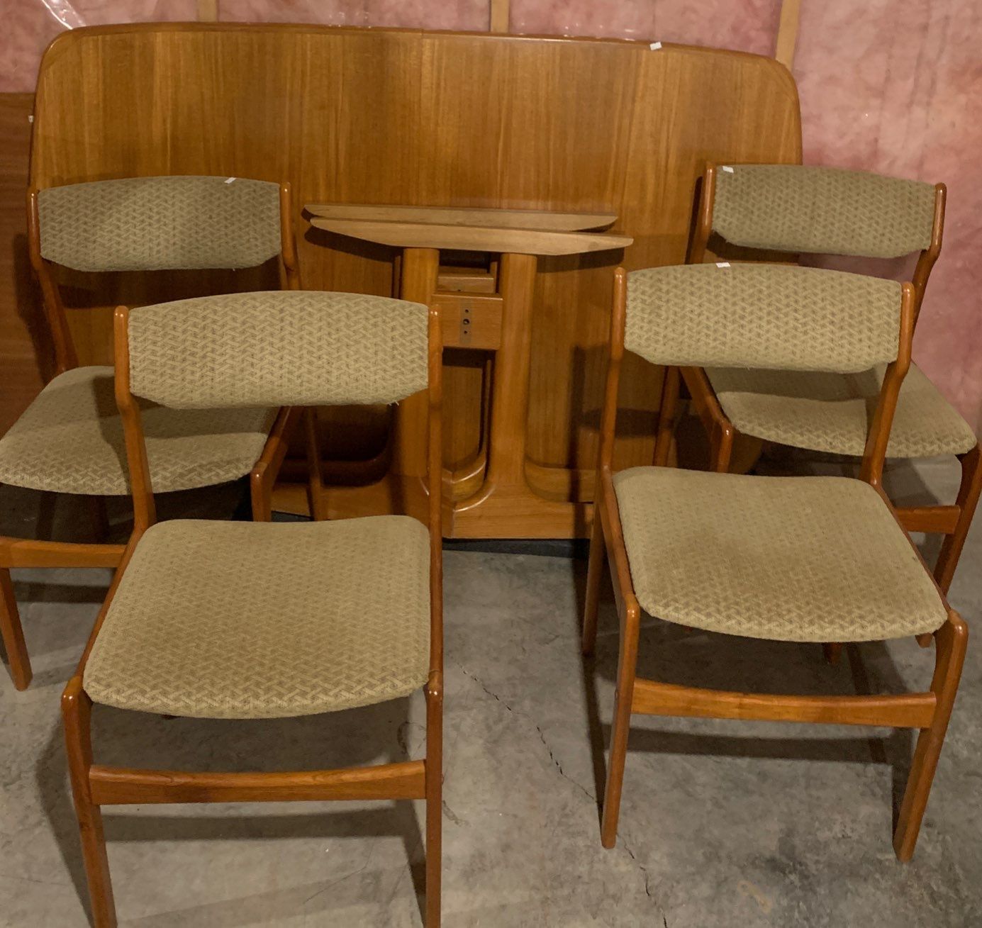 Mid Century Teak Dining Table Set w/ 4 Upholstered Chairs
