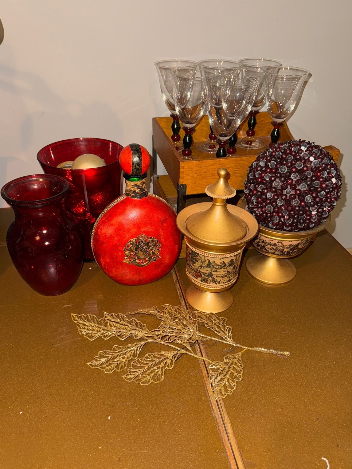 Mikasa Festive Kensington Wine Glasses, Vintage Leather Wrapped Decanter, and More