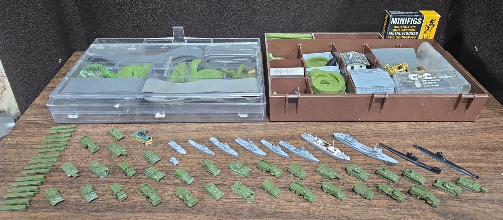 Militaria - Metal Ship/War Miniatures w/ Scene Building Accessories