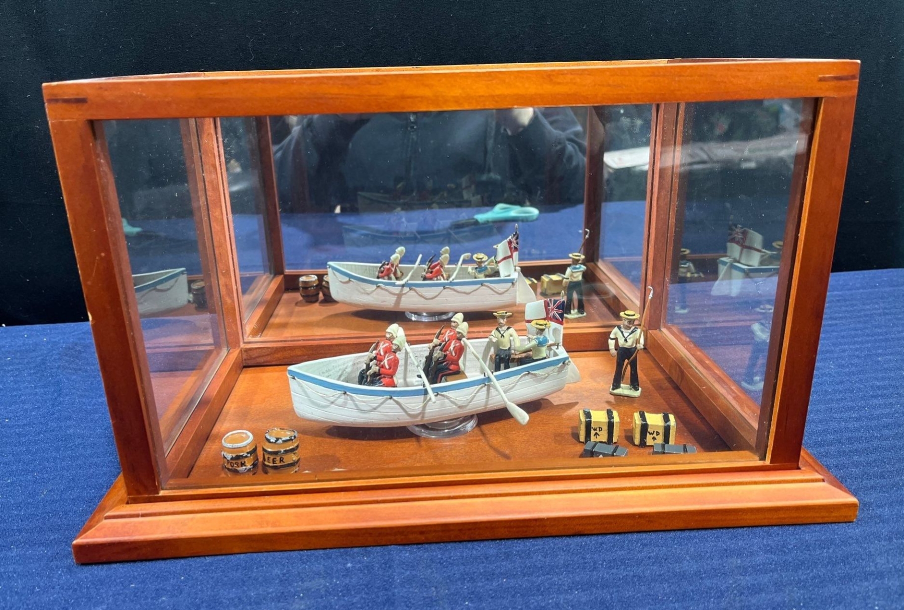 Mini Metal Figures and Display Case with a Mirror Back 15Wx10Dx9H