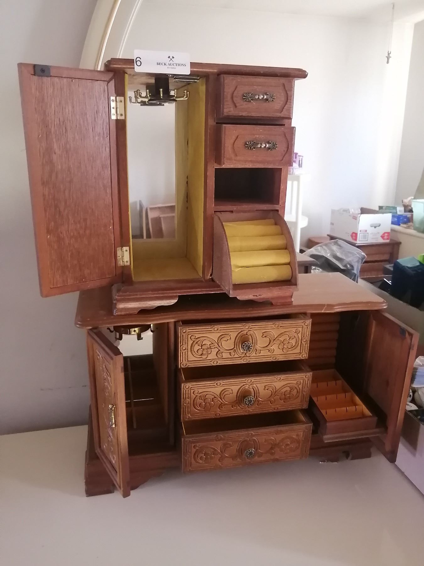 Chest of drawers is 18.5" wide x 6.75" deep x 11.5" tall