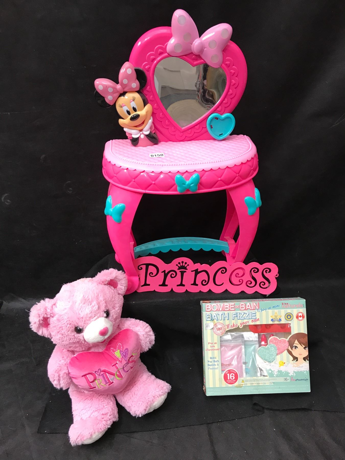 Minnie Mouse Princess Lightup Vanity, Bath Fizzie's & Pink Teddy Bear