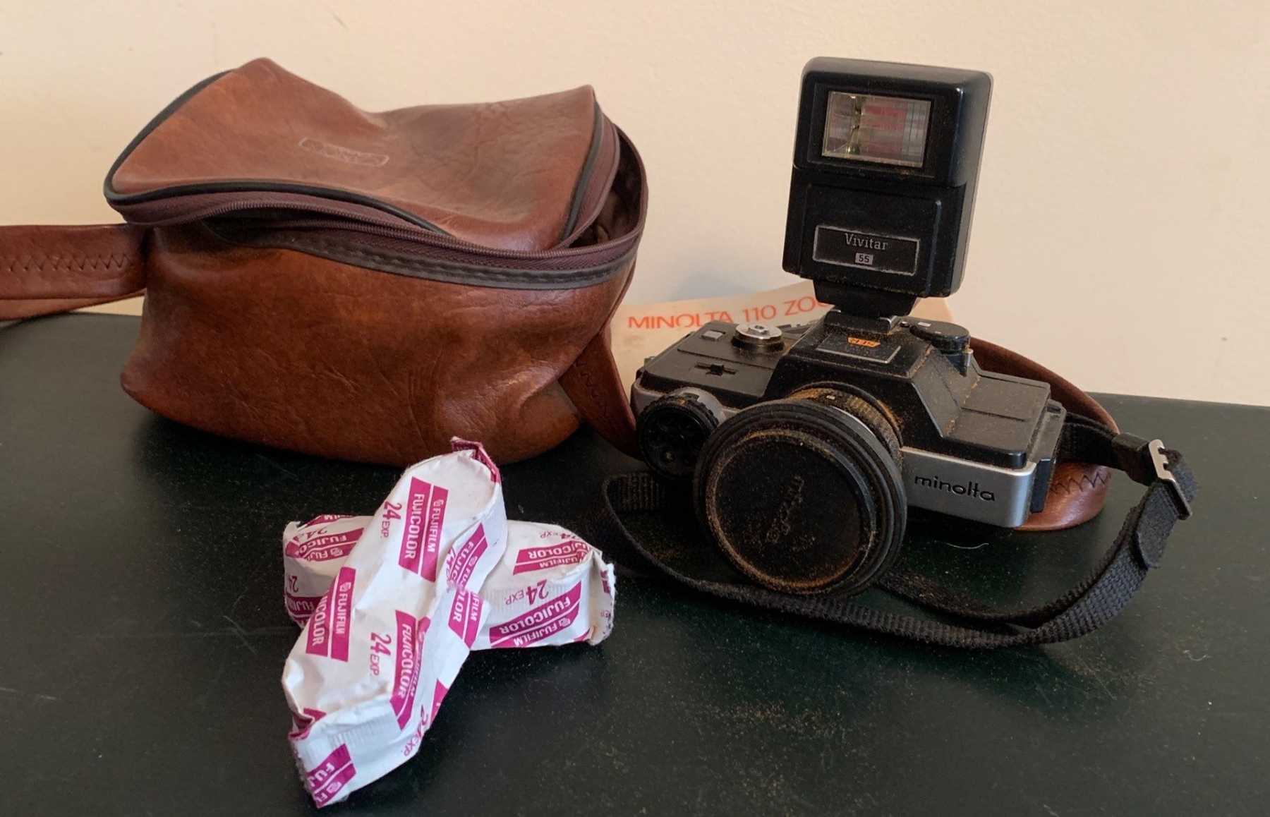 Minolta 110 Zoom SLR w/ Case & Accessories