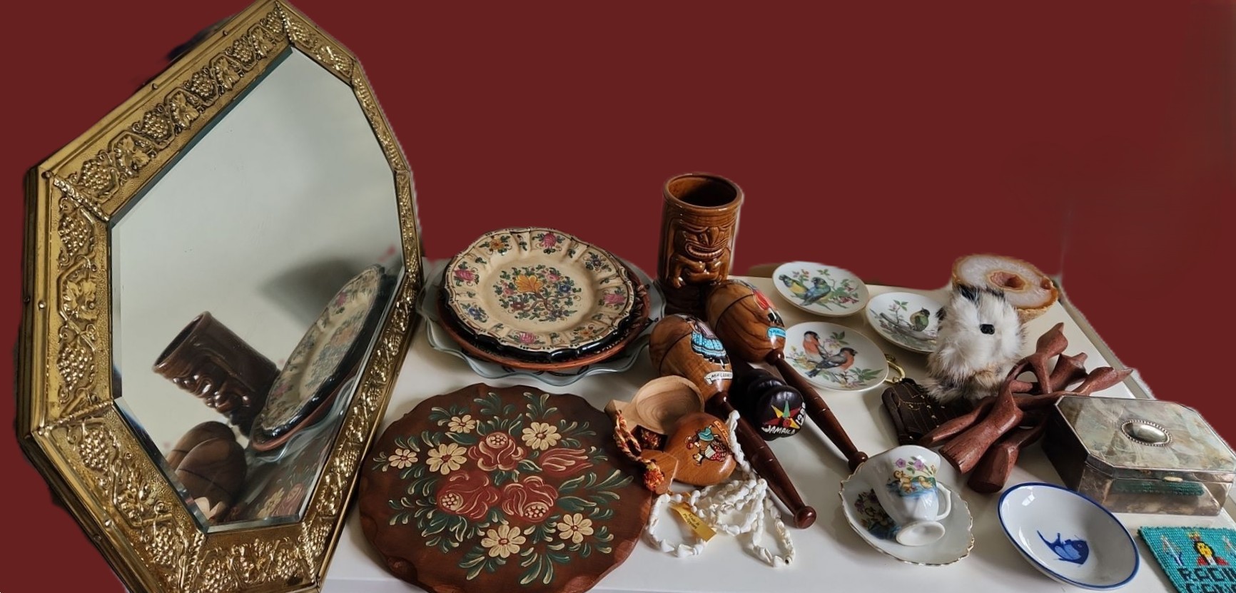Mirror 21 X 13.5, Geode 4 W, 4 D, 2 T, Plates: Painted Wood w/ Floral 8" Diameter and More!