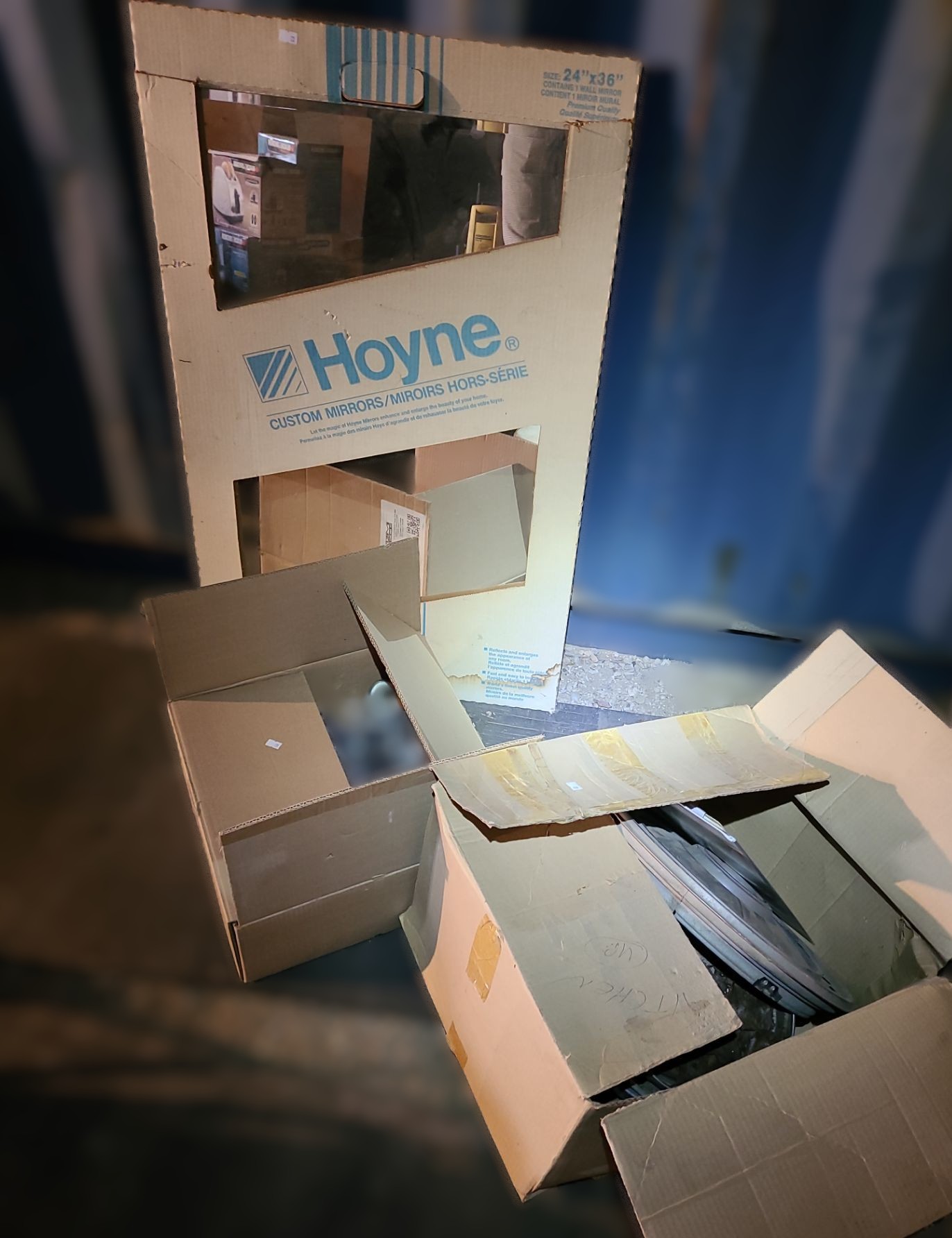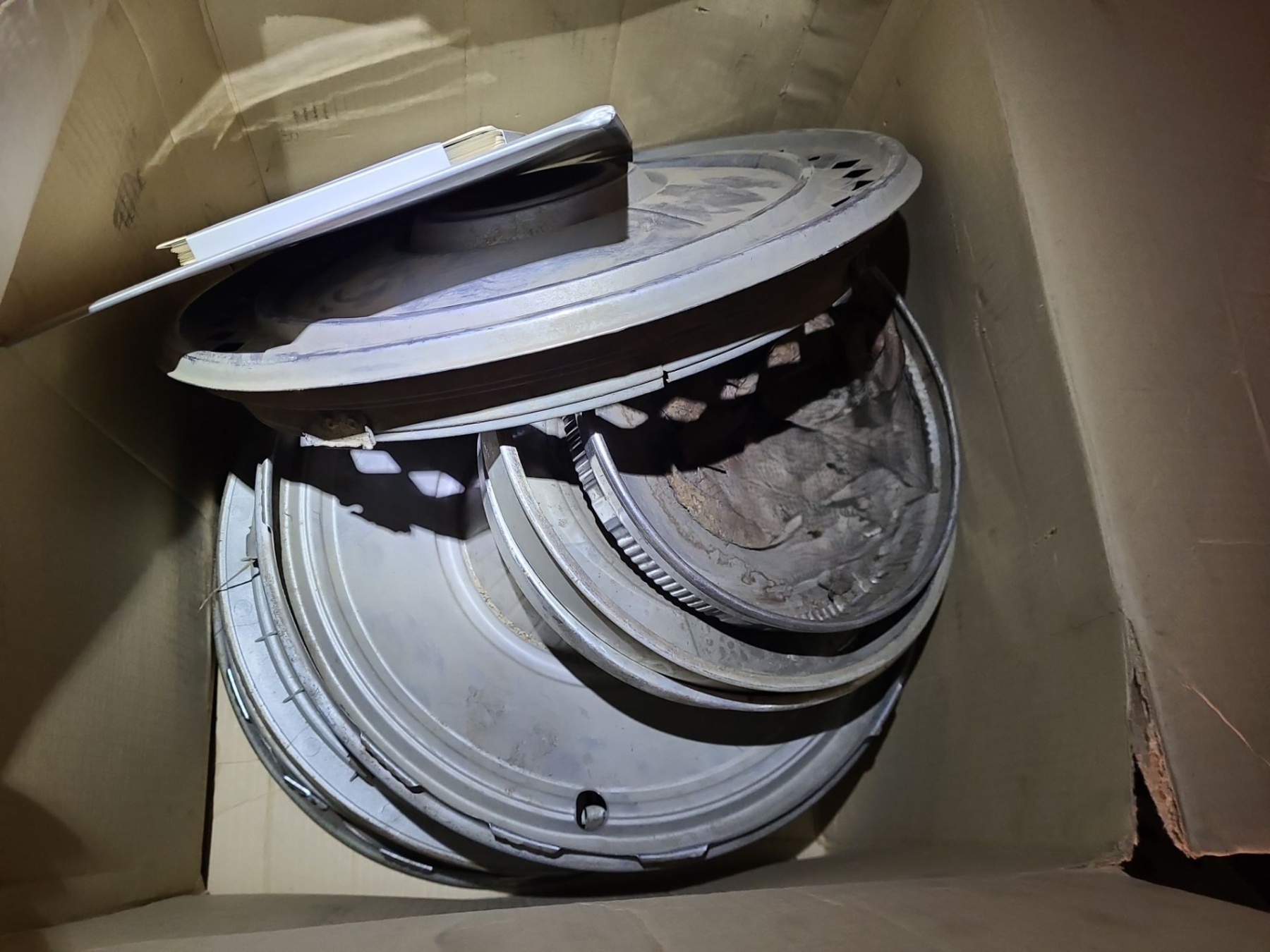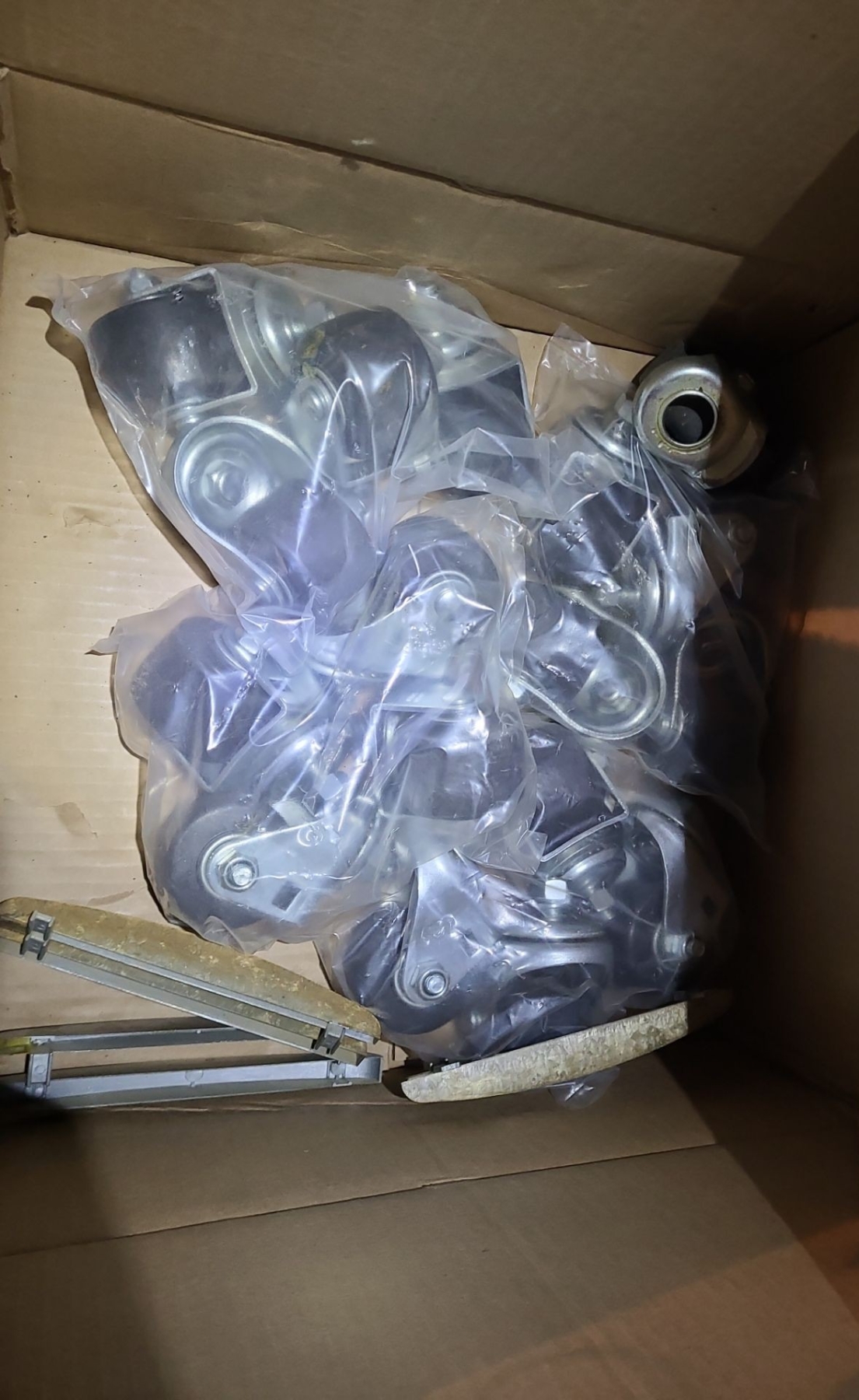 Mirror 24 X 36, Box of Casters, Assorted Hubcaps