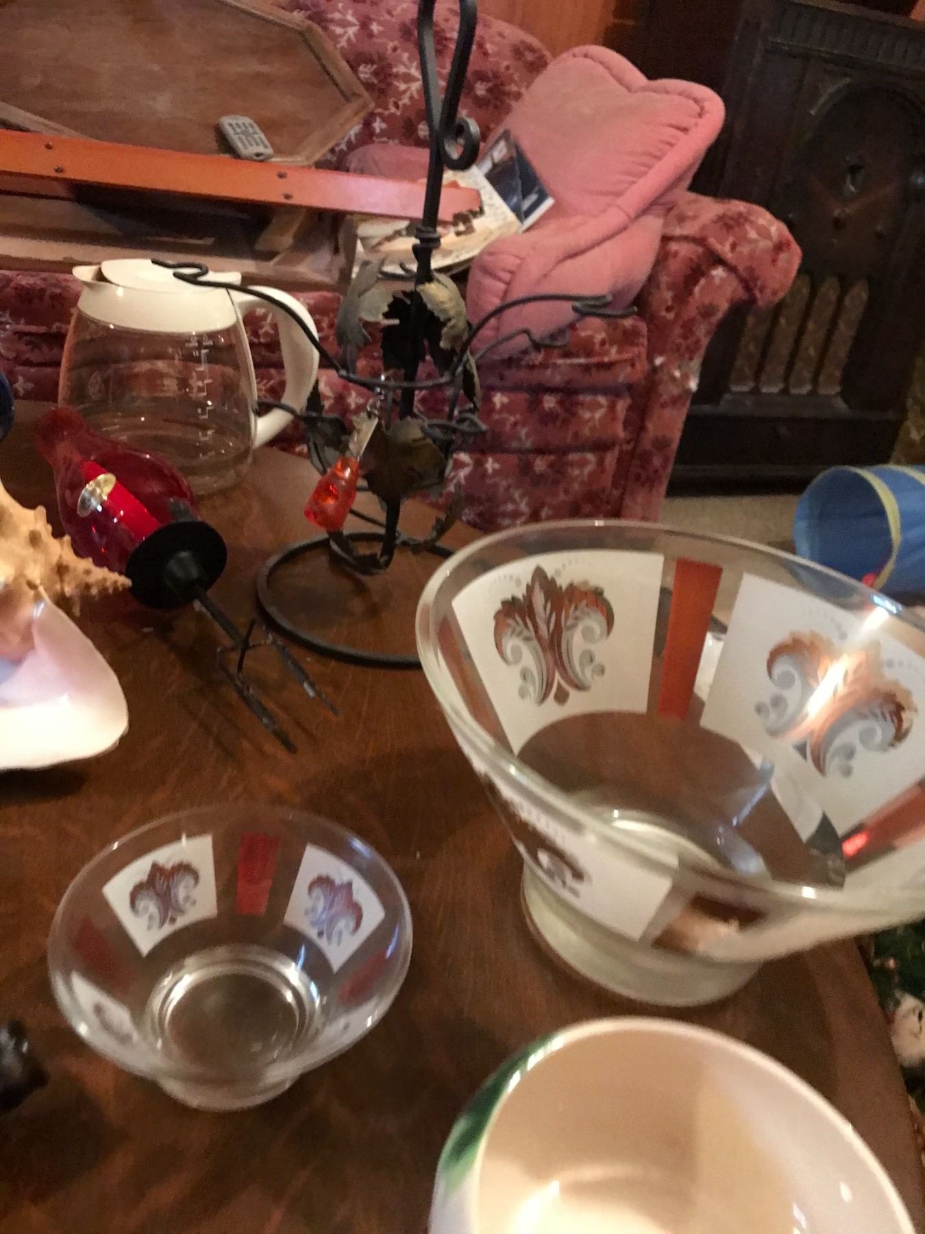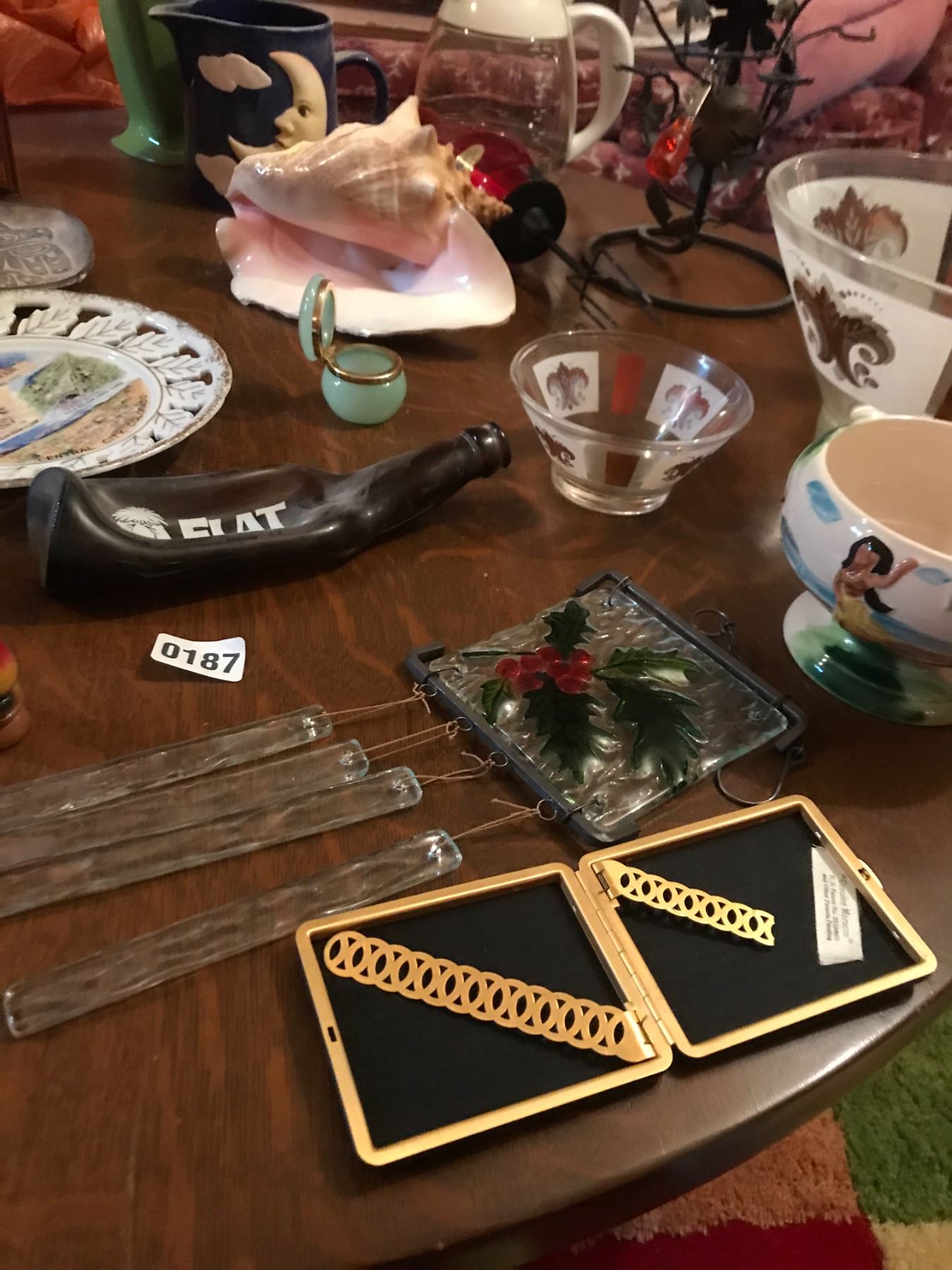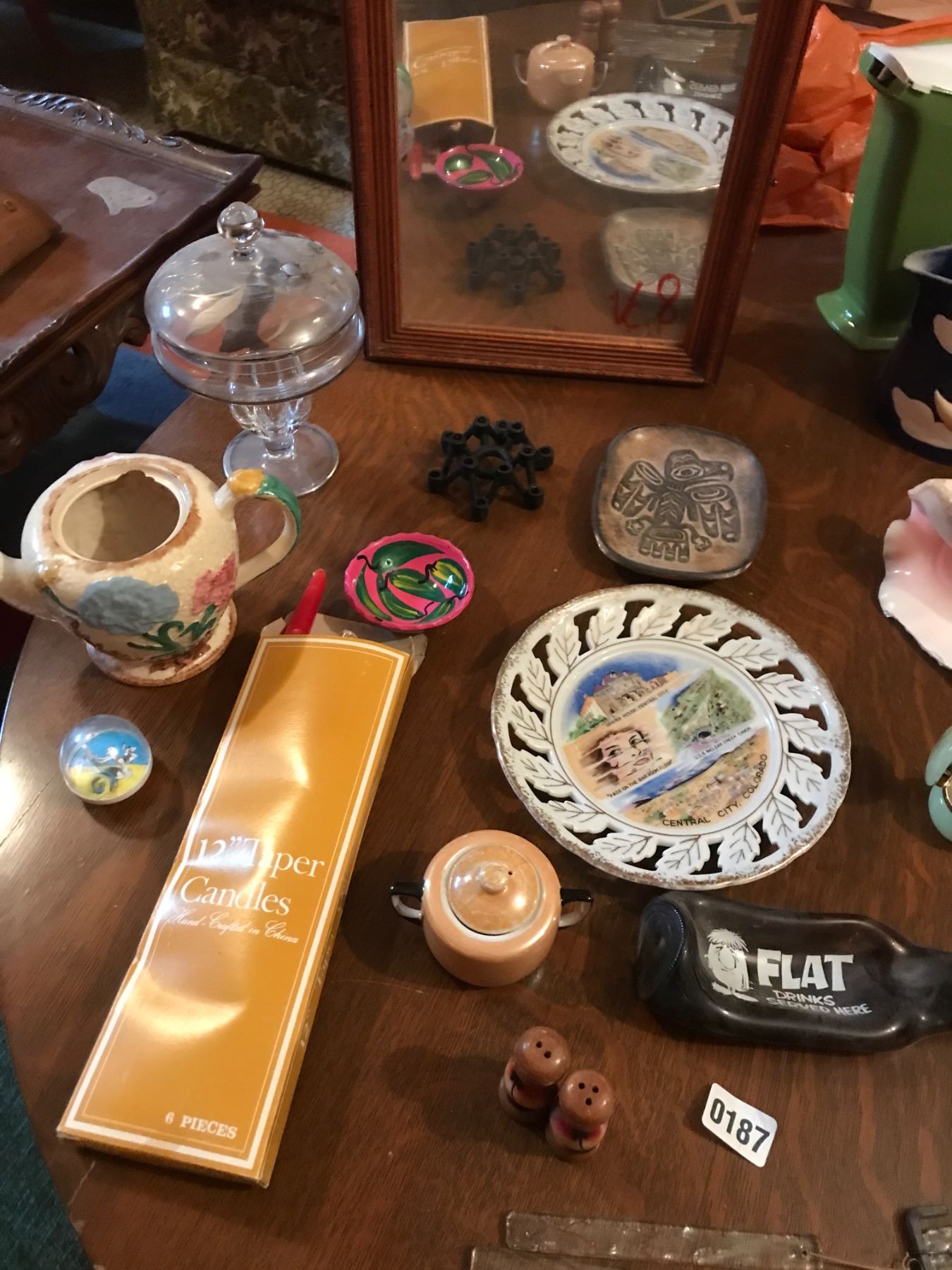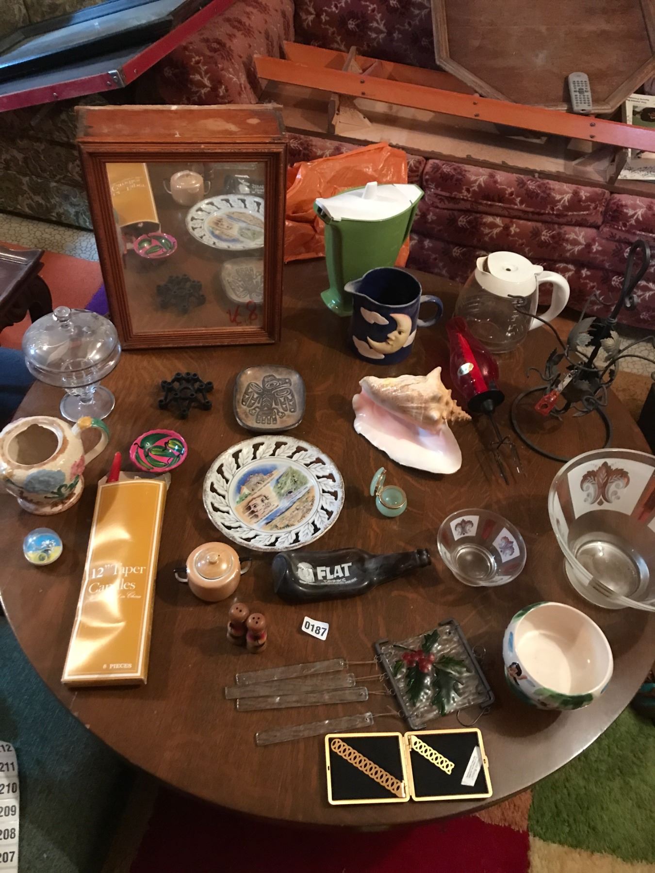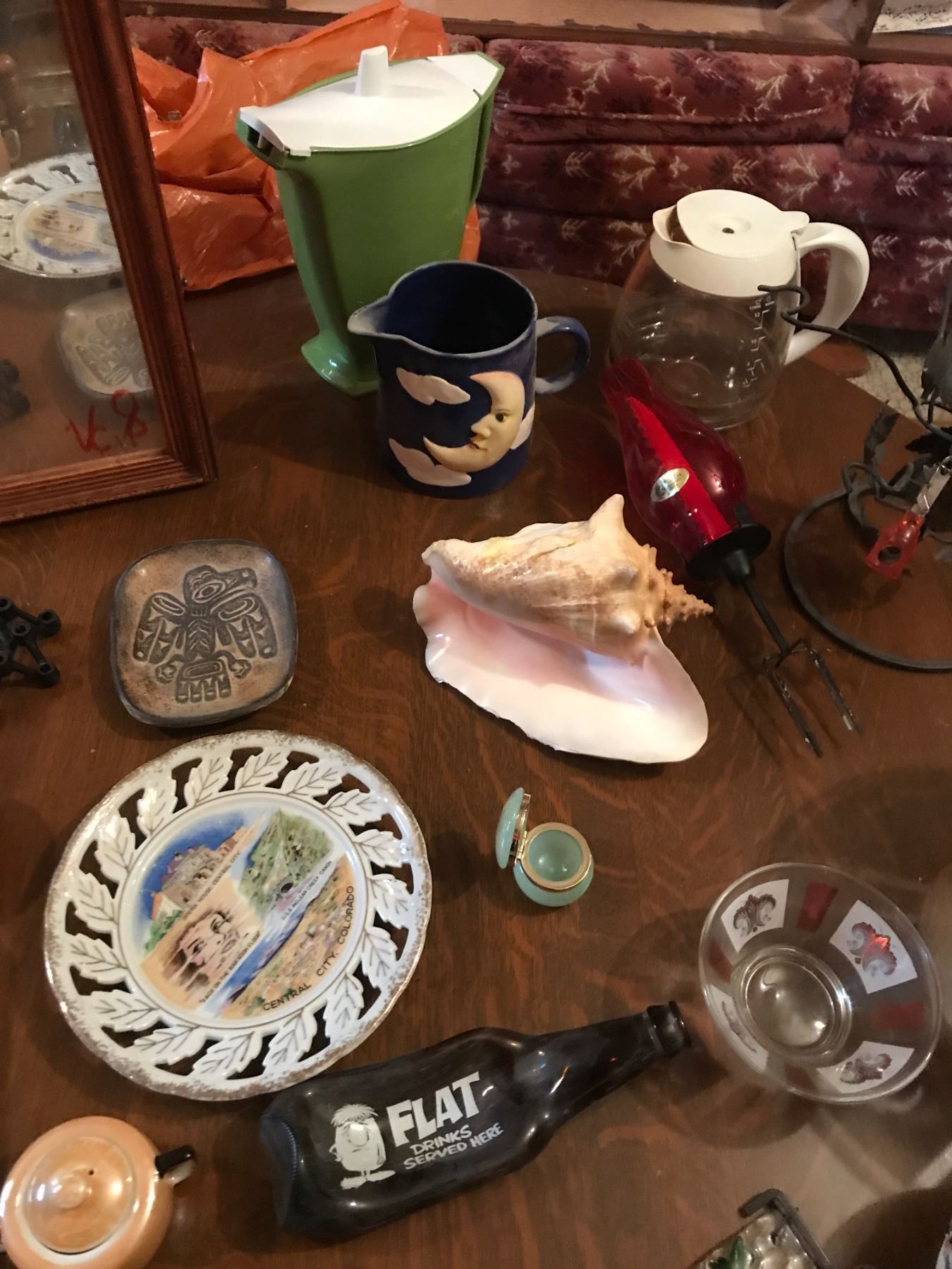 Mirror Cabinet, Conch Shell, Wind Chime & Assorted Glassware & China